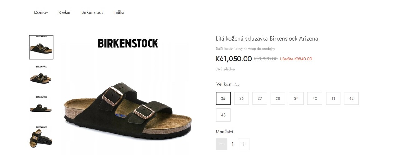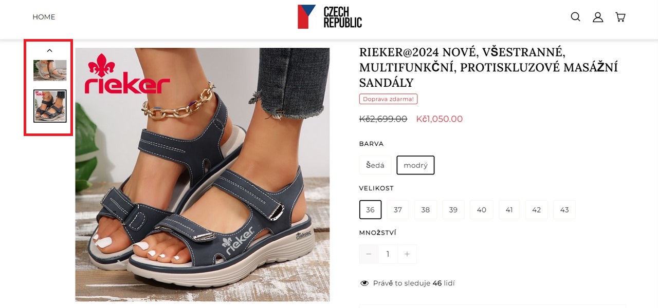 2. Jednoduchá grafika: Pokud rozkliknete produkt, který vás zaujal, obvykle u něj najdete fotky z různých úhlů, abyste si boty mohli pořádně prohlédnout. U podvodných e-shopů je v náhledu často pouze 1 nebo 2 fotografie.