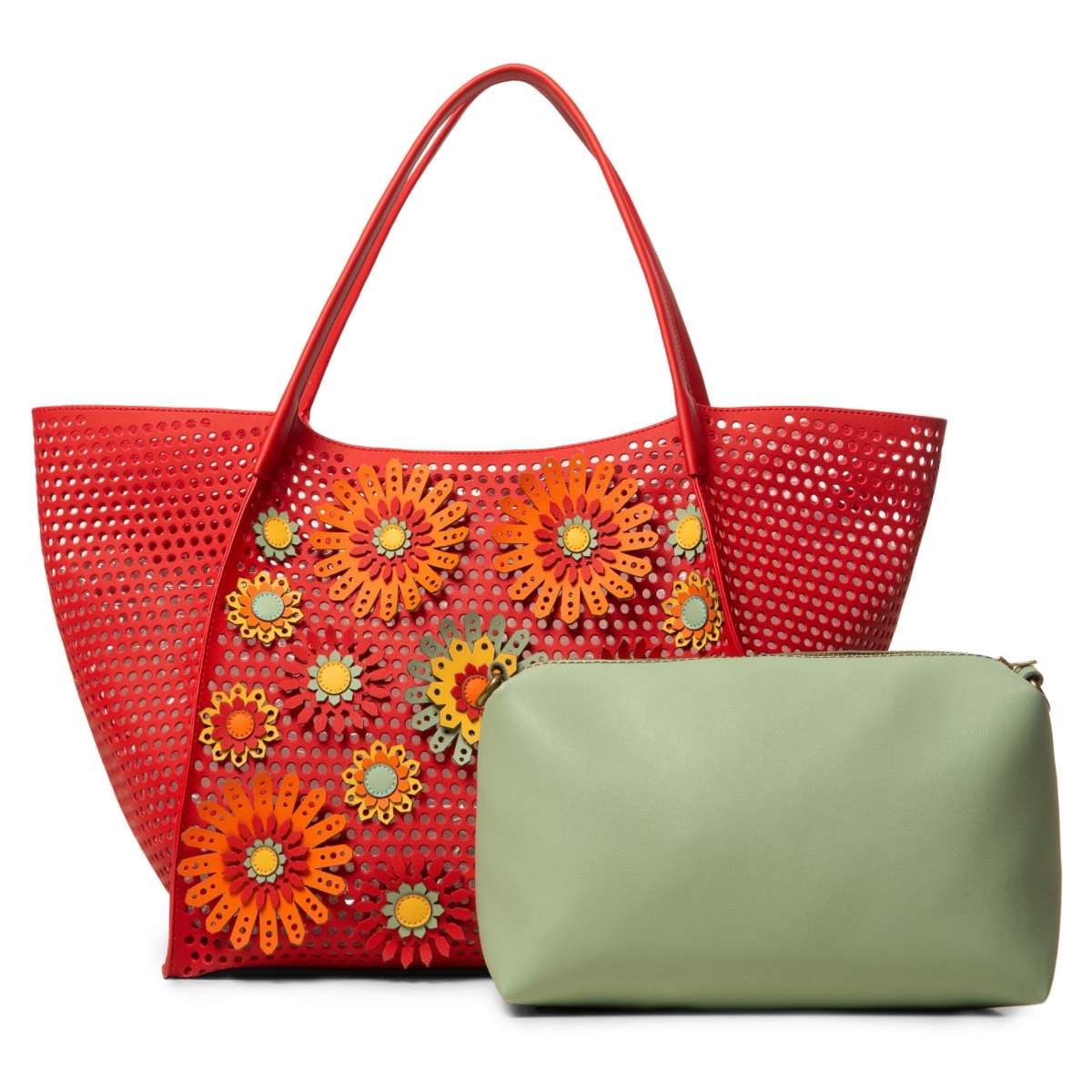 Perforovaná velká kabelka od značky Desigual Vás okouzlí už na první pohled svým neobyčejným vzhledem. Několik barevných komponentů v podobě květin s červenou barvou tvoří úžasný harmonický celek, který si zamiluje určitě každá z Vás.