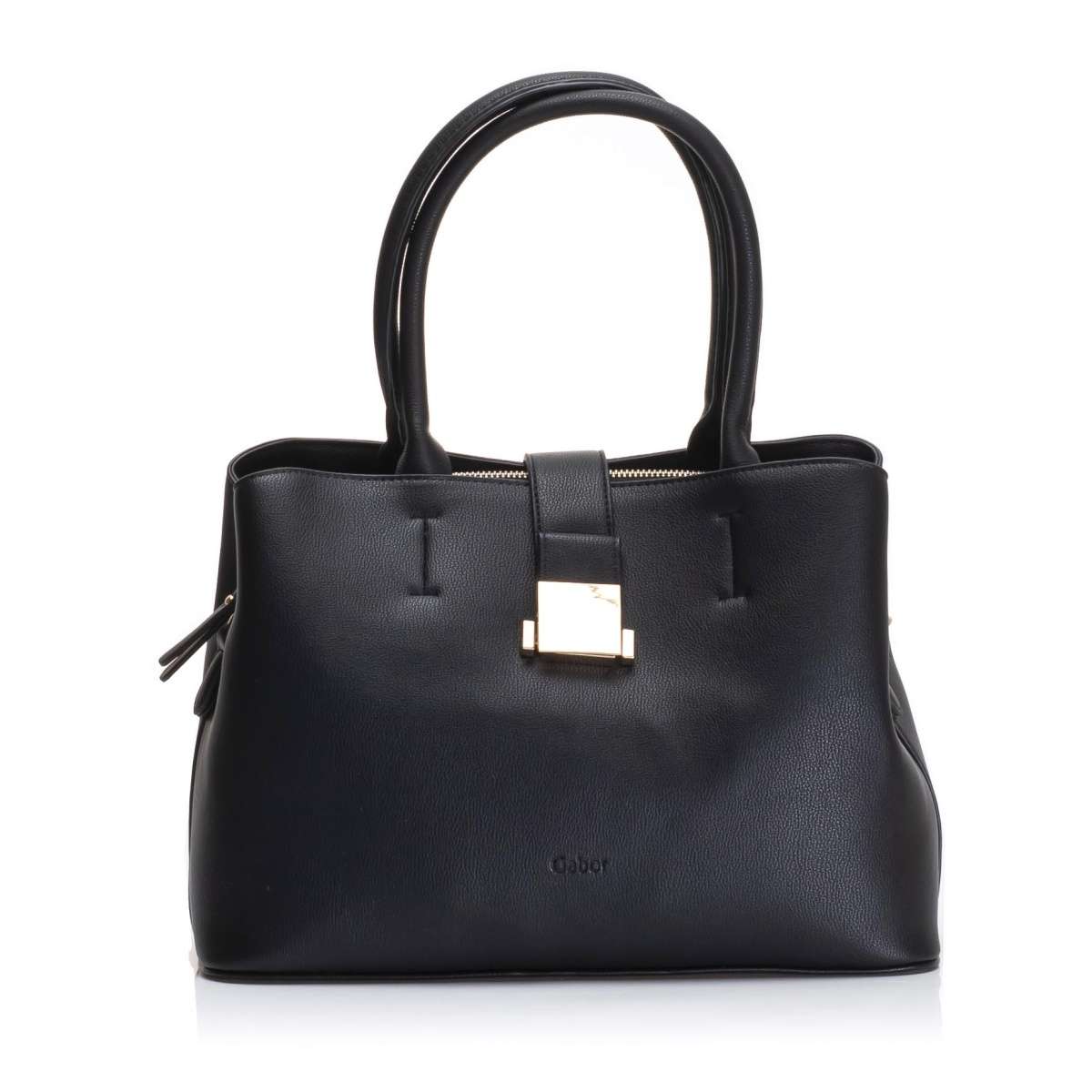 Středně velká dámská kabelka od značky Gabor má stylové zapínání v podobě pásku s kovovým klipem ve zlatavém odstínu.