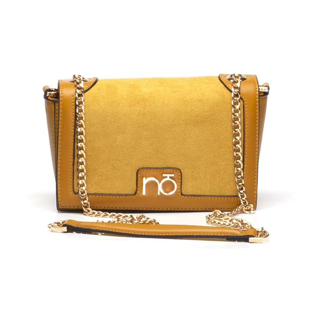 Svršek v oblíbené hořčicové barvě je doplněn zlatými detaily. Klopa se zapínáním na magnet má semišový vzhled a je na ní logo značky.