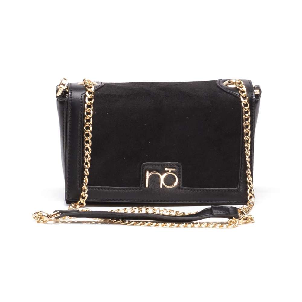 Elegantní černý svršek snadno sladíte s každým outfitem. Klopa se zapínáním na magnet má semišový vzhled a je na ní logo značky. Kabelka je zdobena zlatými prvky.