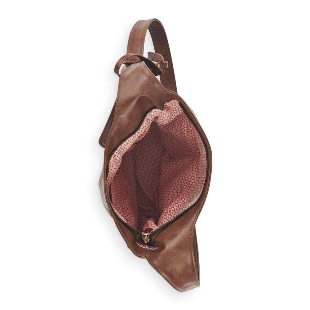Svršek je zdoben jemným prošíváním. Kabelka je kombinací tmavě a světle hnědé. Ve spodní části je všité logo značky, který barevně splývá. Kabelku si můžete vzít přes rameno a nastavit si délku přesně tak, jak je Vám nejvíc příjemné. Kolem ramenního popruhu se nachází ozdoba v barvě materiálu s logem značky. Kabelka je prostorná, takže si do ní můžete dát cokoliv, co zrovna potřebujete mít u sebe.