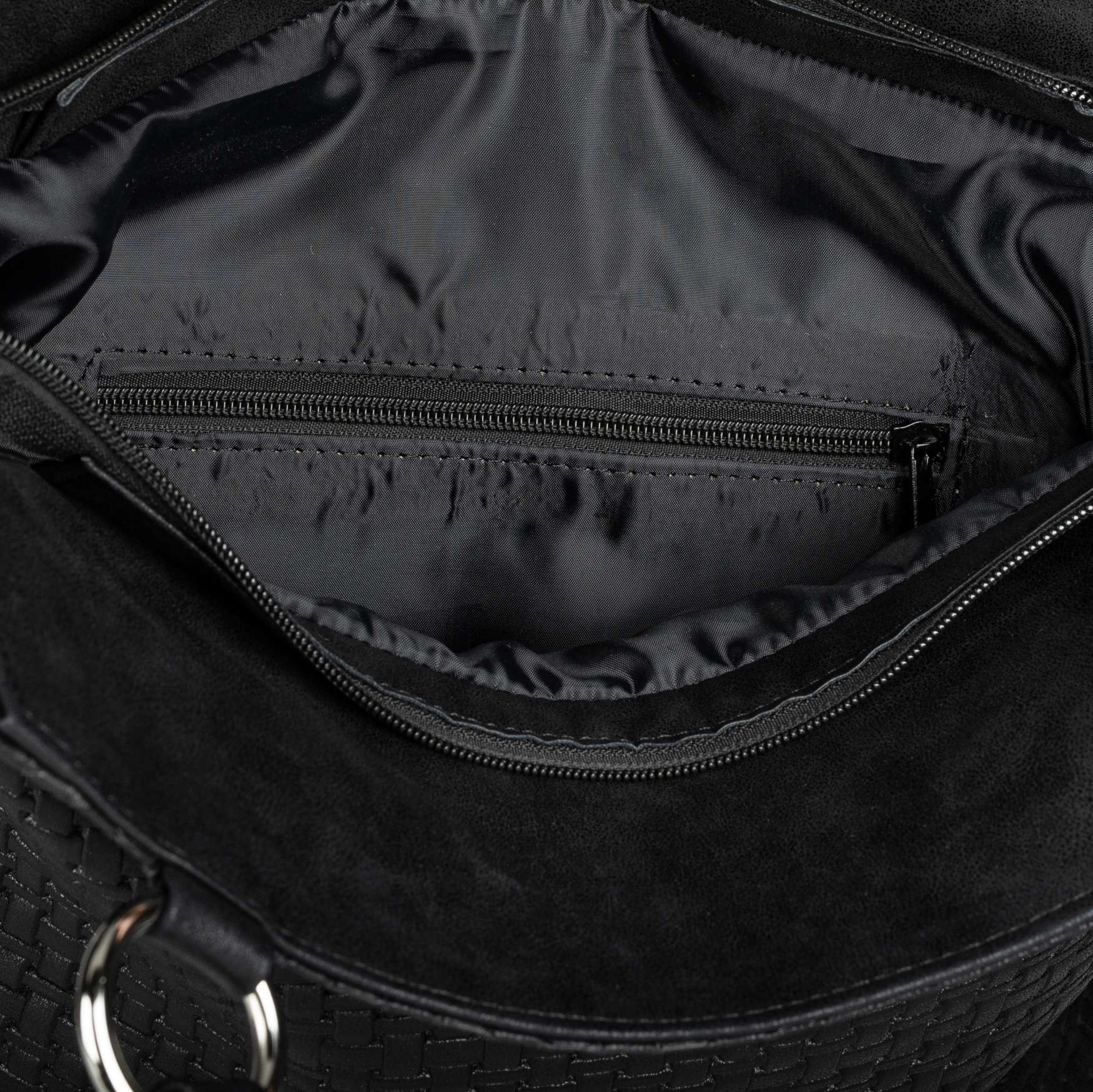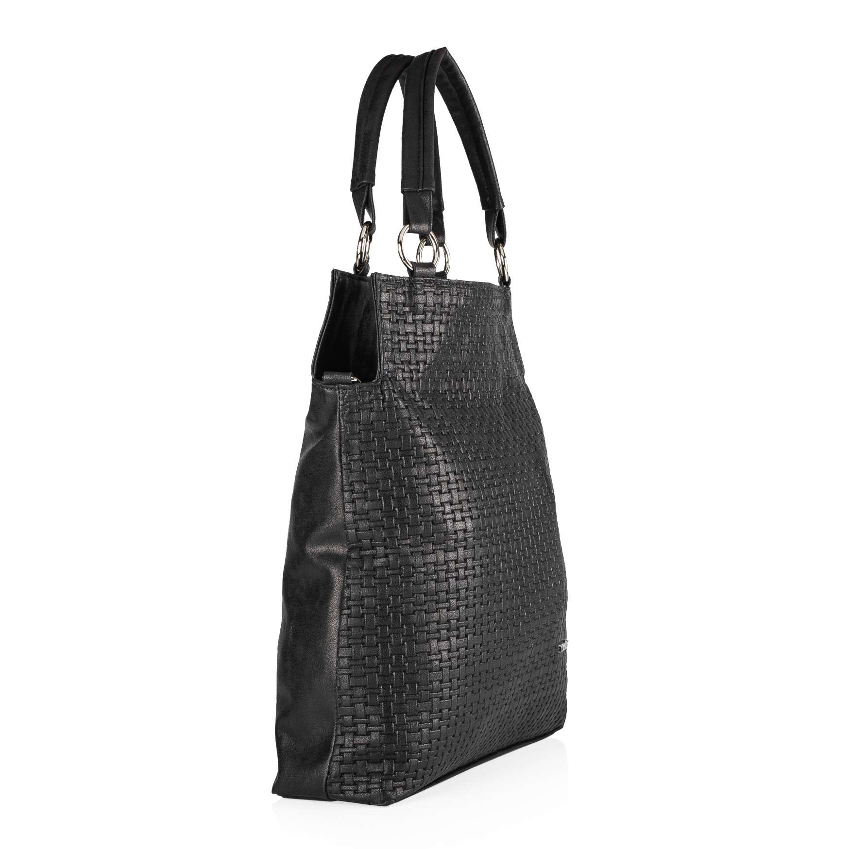 Tato kabelka od značky Rieker zaujme všechny ženy, které mají rády jednoduchý vzhled. Černý svršekv imitaci pleteného vzoru je decentně zdoben pouze logem Rieker na přední straně. Na zadní straně nalezneme všitou kapsičku na zip, která skvěle poslouží například na klíče. Hlavní kapsa na zip poskytuje spoustu prostoru a disponuje navíc i menšími kapsičkami na Vaše drobnosti. Kabelku můžete nosit přes rameno i jako variantu crossbody díky odepínatelnému popruhu. Ať už hledáte kabelku do práce nebo do města, můžete se na tento kousek spolehnout. Rozměry: cca v 39 cm x š 33 cm Vnitřní uspořádání: kabelka není dělená Kabelka má délkově nastavitelný popruh, který lze odepnout. Maximální délka nastavitelného popruhu cca 130 cm.