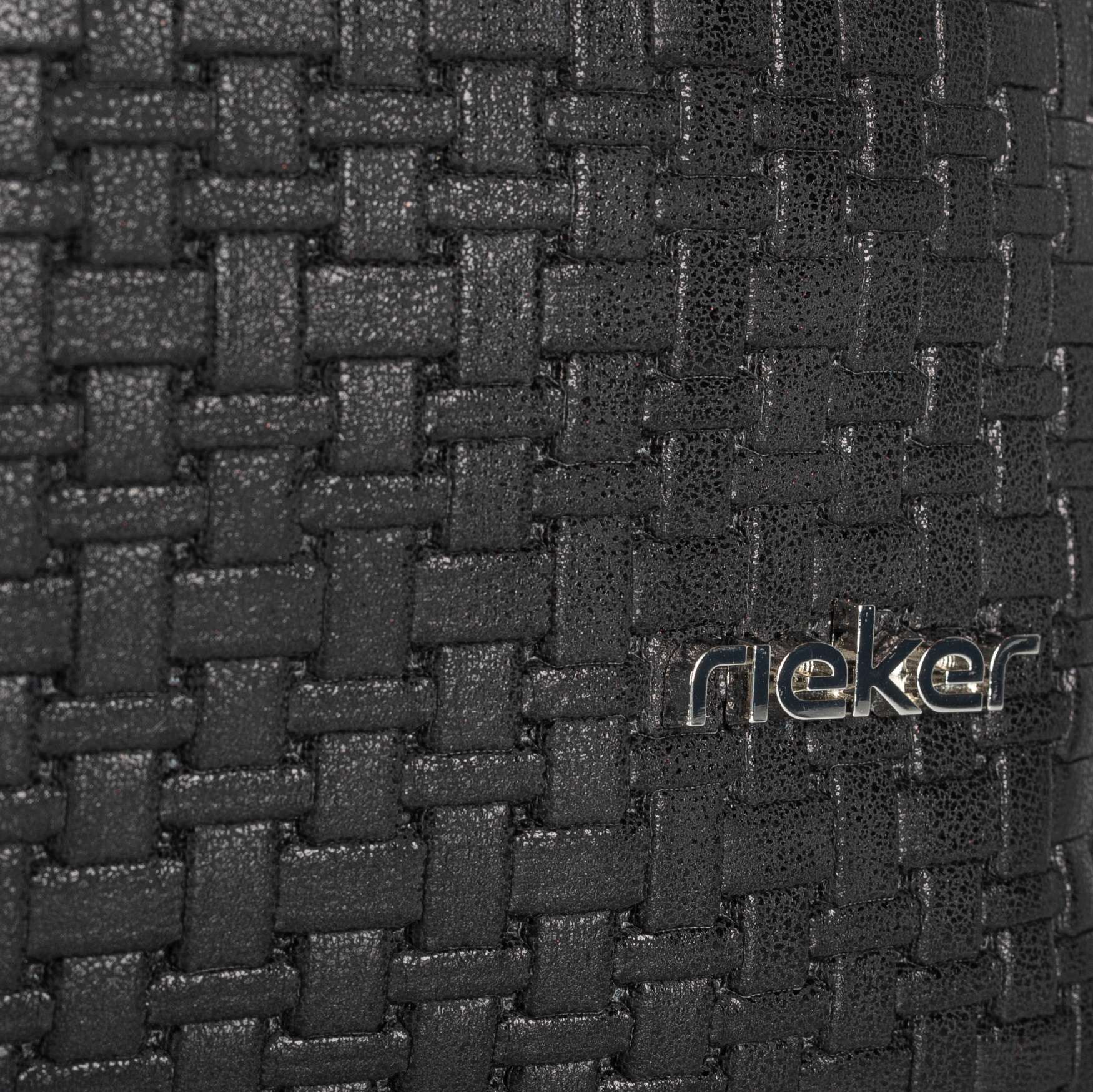 Detailní informace Tato kabelka od značky Rieker zaujme všechny ženy, které mají rády jednoduchý vzhled. Černý svršekv imitaci pleteného vzoru je decentně zdoben pouze logem Rieker na přední straně. Na zadní straně nalezneme všitou kapsičku na zip, která skvěle poslouží například na klíče. Hlavní kapsa na zip poskytuje spoustu prostoru a disponuje navíc i menšími kapsičkami na Vaše drobnosti. Kabelku můžete nosit přes rameno i jako variantu crossbody díky odepínatelnému popruhu. Ať už hledáte kabelku do práce nebo do města, můžete se na tento kousek spolehnout.