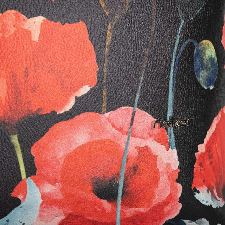 Tato kabelka značky RIEKER, zaujme všechny ženy na první pohled. Svršek je vkusně zdoben vlčími máky a doplněn logem značky na přední straně. Na zadní straně nalezneme všitou kapsičku na zip, která skvěle poslouží na klíče či drobnosti. Hlavní kapsa na zip poskytuje spoustu prostoru a disponuje navíc i menšími kapsičkami, a tak si můžete svoje nezbytnosti uspořádat dle svých představ. Kabelku můžete nosit přes rameno nebo jako variantu crossbody díky odepínatelnému popruhu. Ať už hledáte kabelku do práce nebo do města, můžete se na tento kousek spolehnout. Rozměry: V cca 39 x Š cca 33 cm Vnitřní upořádání: Kabelka není dělená Kabelka má délkově nastavitelný popruh, který lze odepnout.