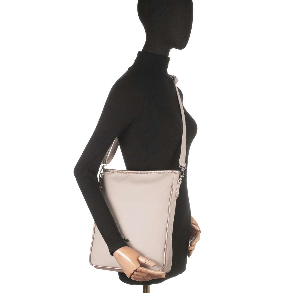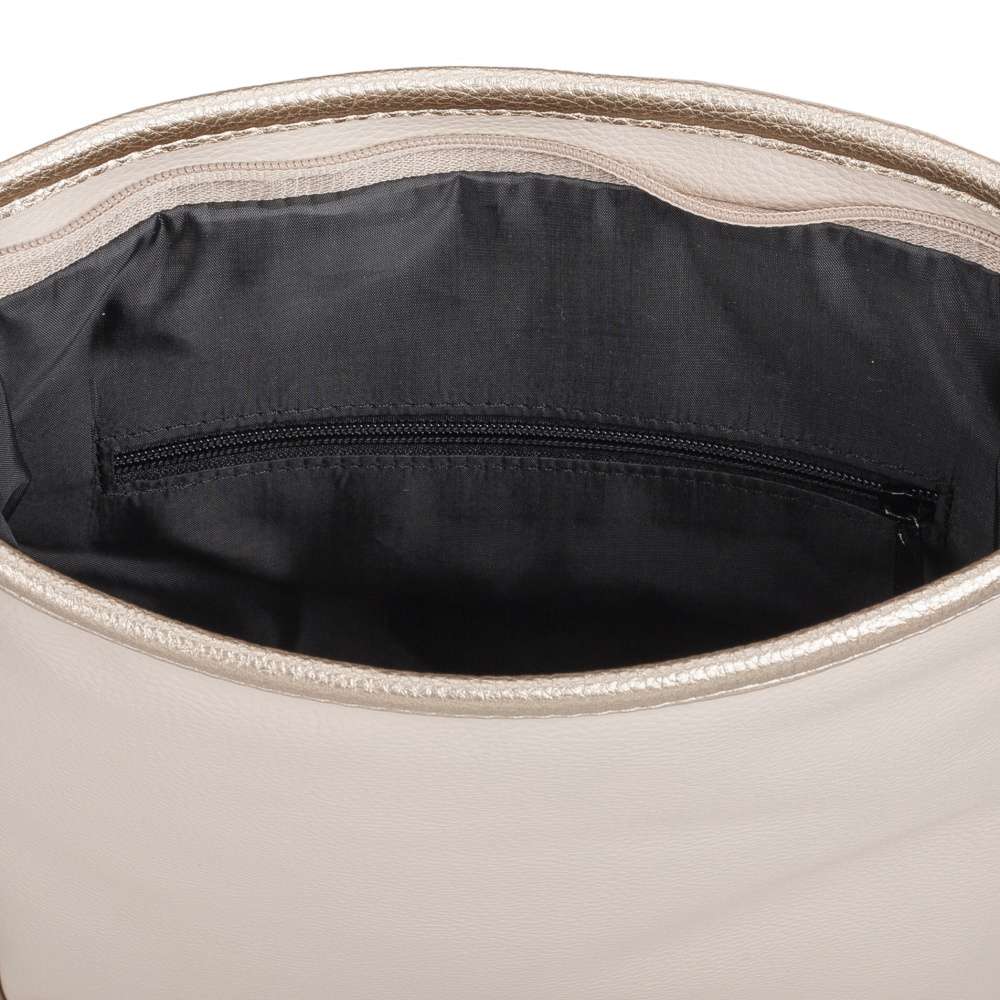 Tento model značky RIEKER je dokonalou módní volbou, která elegantně obohatí váš šatník. Béžový svršek působí nadčasově, zatímco třpytivé logo ve stříbrné barvě dodává kabelce jedinečný akcent a luxusní vzhled modelu zvýrazňuje zlaté lemování, které vytváří harmonický kontrast. Promyšlené vnitřní řešení zaručuje maximální praktičnost – horní zip otevírá prostorný interiér doplněný dvěma menšími kapsičkami, ideálními pro přehledné uložení drobností. Zadní kapsa poskytuje rychlý a pohodlný přístup k věcem, které chcete mít vždy po ruce. Odnímatelný a délkově nastavitelný popruh umožňuje variabilní nošení dle vašich potřeb a dodává kabelce všestrannost pro každodenní využití. Tento model RIEKER spojuje módní design s funkčností a stává se stylovým doplňkem, který podtrhne váš osobitý vkus a dodá každému outfitu nádech jedinečnosti.
