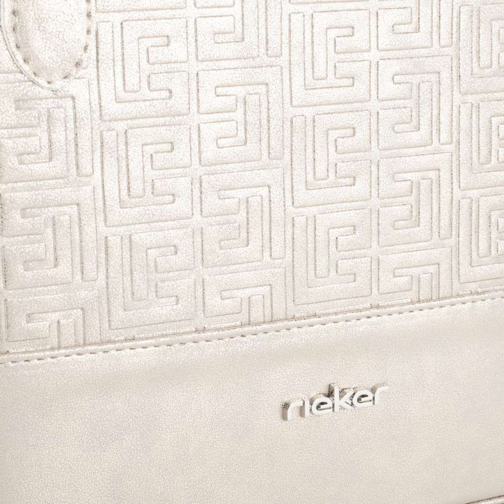Působivé zlaté odlesky a unikátní vzor dělají z této kabelky RIEKER výjimečný módní kousek, který okamžitě upoutá pozornost a logo značky podtrhuje její výjimečnou eleganci. Tento model je ideální pro ženy, které chtějí svému outfitu dodat luxusní lesk a zároveň si potrpí na praktičnost – díky promyšlenému vnitřnímu členění budete mít vše potřebné vždy po ruce. Hlavní prostor uzavíratelný zipem ukrývá dvě vnitřní kapsy, jednu otevřenou a druhou se zipem pro vytvoření dokonalé organizace uložených věcí. Na zadní straně najdete další kapsu na zip, ideální pro věci, ke kterým potřebujete rychlý přístup. Díky promyšlené organizaci je tato kabelka nejen krásná, ale také mimořádně praktická. Pohodlí při nošení zajistí dva pevné popruhy zlaté barvy, které umožňují komfortní a stylové nošení kabelky přes rameno. Kabelka se zlatými detaily a moderním designem dodá vašemu vzhledu vyjímečný lesk – ideální pro ženy, které milují módu s charakterem. Rozměry: cca V 24,5 cm x Š 27,5 cm x H 11 cm Vnitřní uspořádání: Kabelka není dělená. Délka pevných popruhů pro nošení přes rameno je cca 60 cm.