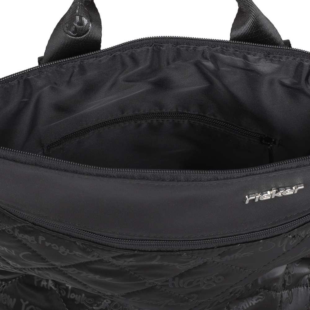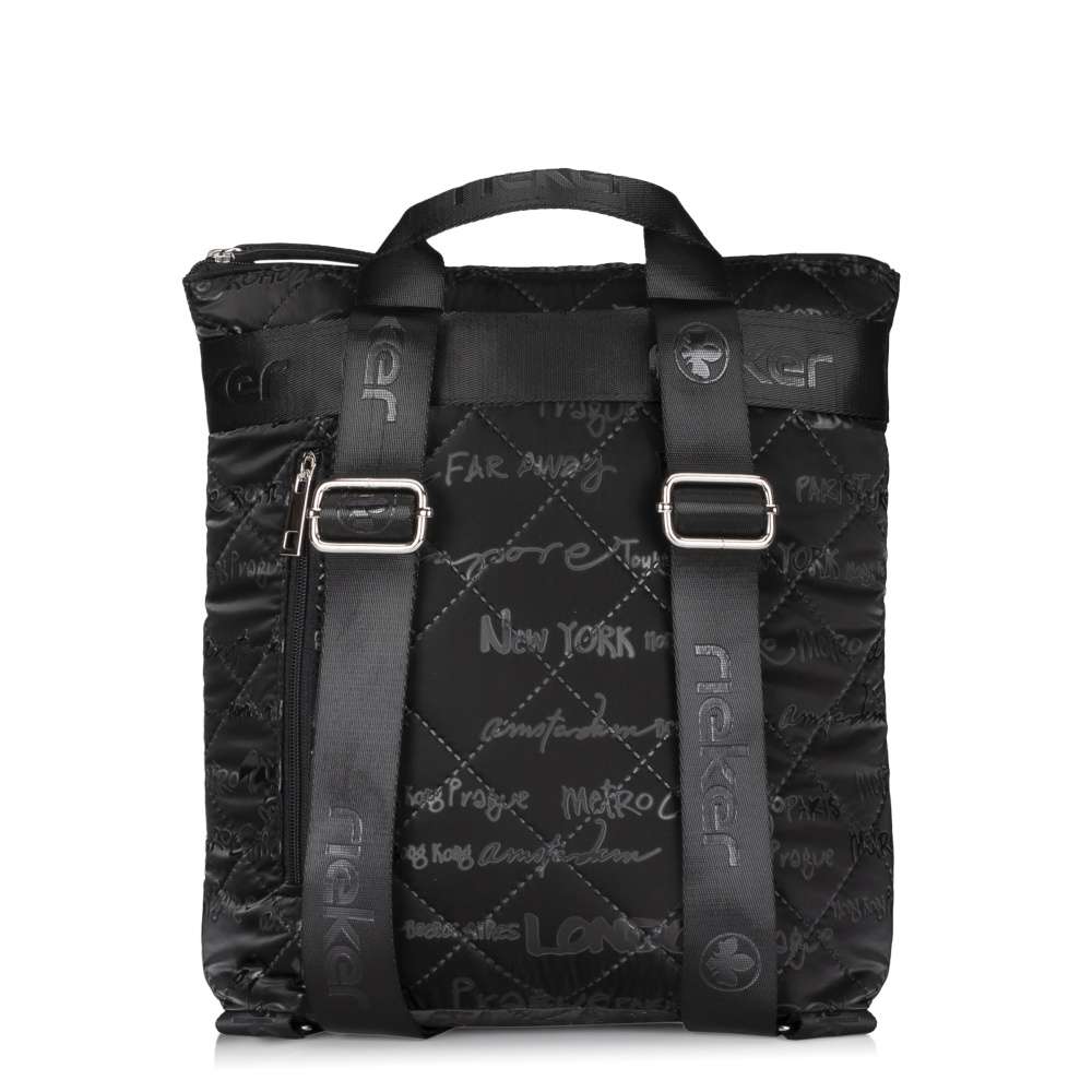 Batoh značky RIEKER je skutečnou módní ikonou pro každou moderní ženu. Jeho černý textilní svršek působí dynamicky a zdobí jej stylové nápisy, které dodávají modelu jedinečný charakter a výraz. Horní část batohu je vyhotovena v hladkém provedení a doplněna logem značky ve stříbrné barvě, které působí decentně, ale zároveň podtrhuje prestiž a kvalitu produktu. Batoh je navržen tak, aby vám přinesl maximální komfort při každodenním používání. Přední část je vybavena prostornou kapsou na zip, ideální pro věci, které potřebujete mít stále po ruce. Na zadní straně najdete další kapsu, která zajistí diskrétní uložení vašich cenností. Hlavní část uzavřená zipem nabízí dostatek místa pro všechny potřebné věci – od peněženky a mobilu až po tablet či menší diář. Uvnitř se nacházejí praktické přihrádky, díky kterým si zachováte přehled a pořádek. O pohodlné nošení se starají nastavitelné popruhy, které se přizpůsobí vašemu tempu dne a krátké ucho poskytuje možnost nošení v ruce. Batoh je navržen tak, aby se stal nejen praktickým společníkem, ale také luxusním módním prvkem, který podtrhne vaši osobnost – ať už kráčíte do práce, objevujete městské uličky nebo vyrážíte na víkendovou cestu. Rozměry: cca V 32 cm x Š 30 cm x H 11 cm Vnitřní uspořádání: Batoh není dělený. Batoh má délkově nastavitelné popruhy.