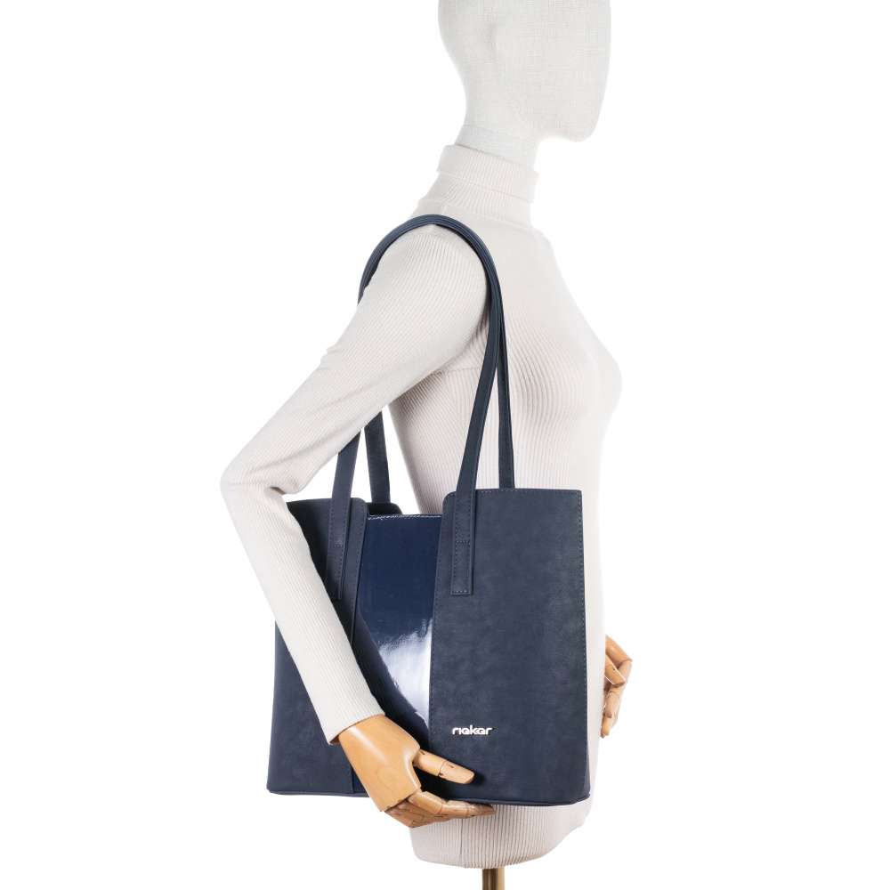 Estetická přitažlivost této kabelky RIEKER pramení z dokonalé souhry matného a lesklého materiálu, které se navzájem doplňují a vytváří elegantní vizuální kontrast. Moderní tvarování a kreativní propojení dílů na přední straně jí dávají vyjímečný styl. Stříbrné logo značky na přední straně decentně podtrhuje prémiový charakter kabelky a dodá punc originality. Z praktického hlediska je tato kabelka navržena tak, aby spolehlivě provázela moderní ženy po celý den. Na zadní straně se nachází menší zipová kapsička, ideální pro uložení drobných předmětů, které chcete mít okamžitě po ruce bez potřeby otevírání hlavního prostoru. Vrchní zip vede do prostorného interiéru, který nabízí přehledné uspořádání – jednu bezpečnou vnitřní přihrádku se zipem na cennosti a druhou otevřenou přihrádku určenou pro drobnosti, které potřebujete mít rychle dostupné. Kabelka disponuje dvěma pevnými, delšími popruhy, které zaručují pohodlné nošení přes rameno i při delším používání. Jsou navrženy tak, aby dobře seděly na rameni a poskytly maximální komfort během celého dne. Kabelka RIEKER je dokonalou volbou pro ženy, které hledají spojení vizuální přitažlivosti a každodenní praktičnosti. Rozměry: cca V 30 cm x Š 34 cm x H 12 cm Vnitřní uspořádání: Kabelka není dělená. Délka popruhu pro nošení přes rameno je cca 60 cm.