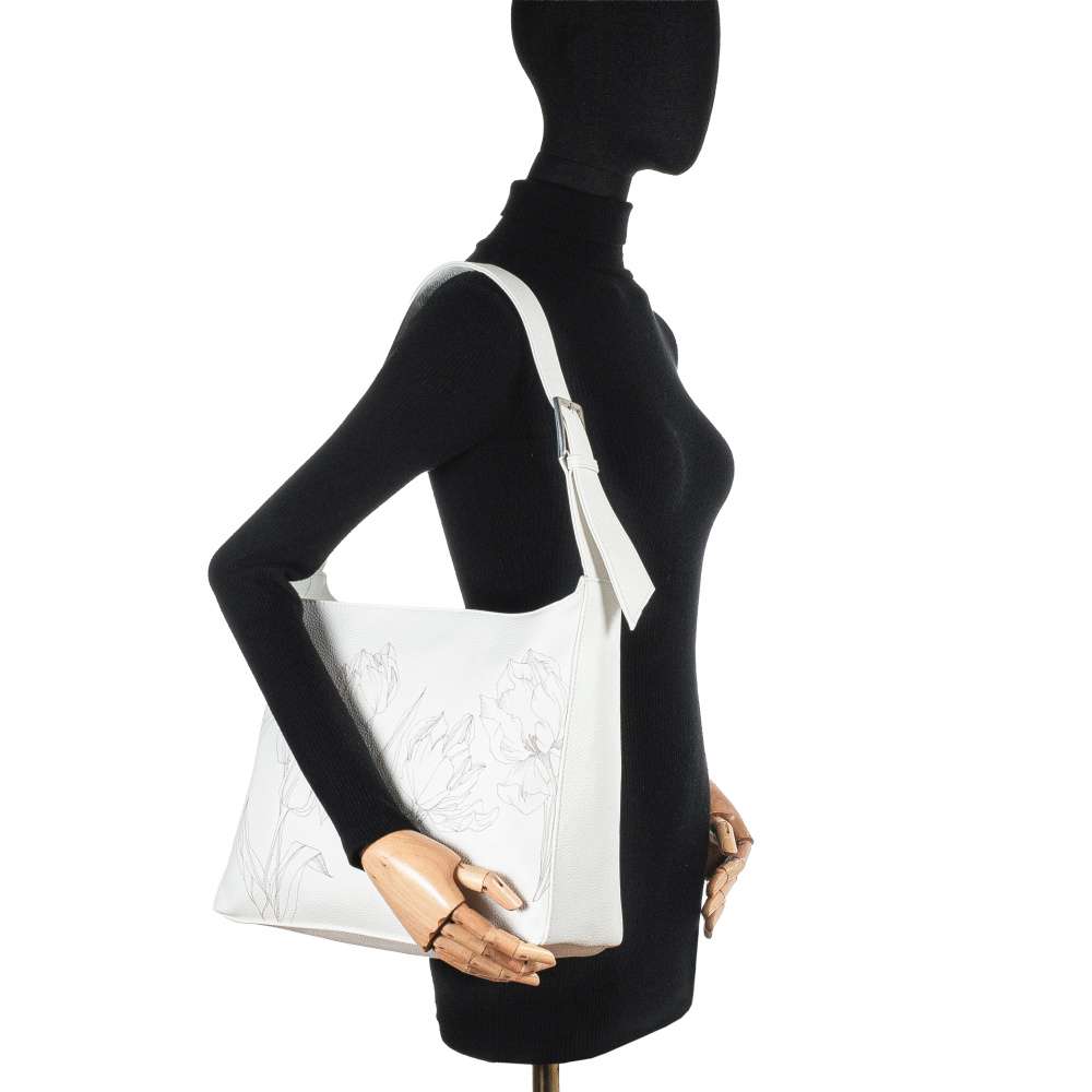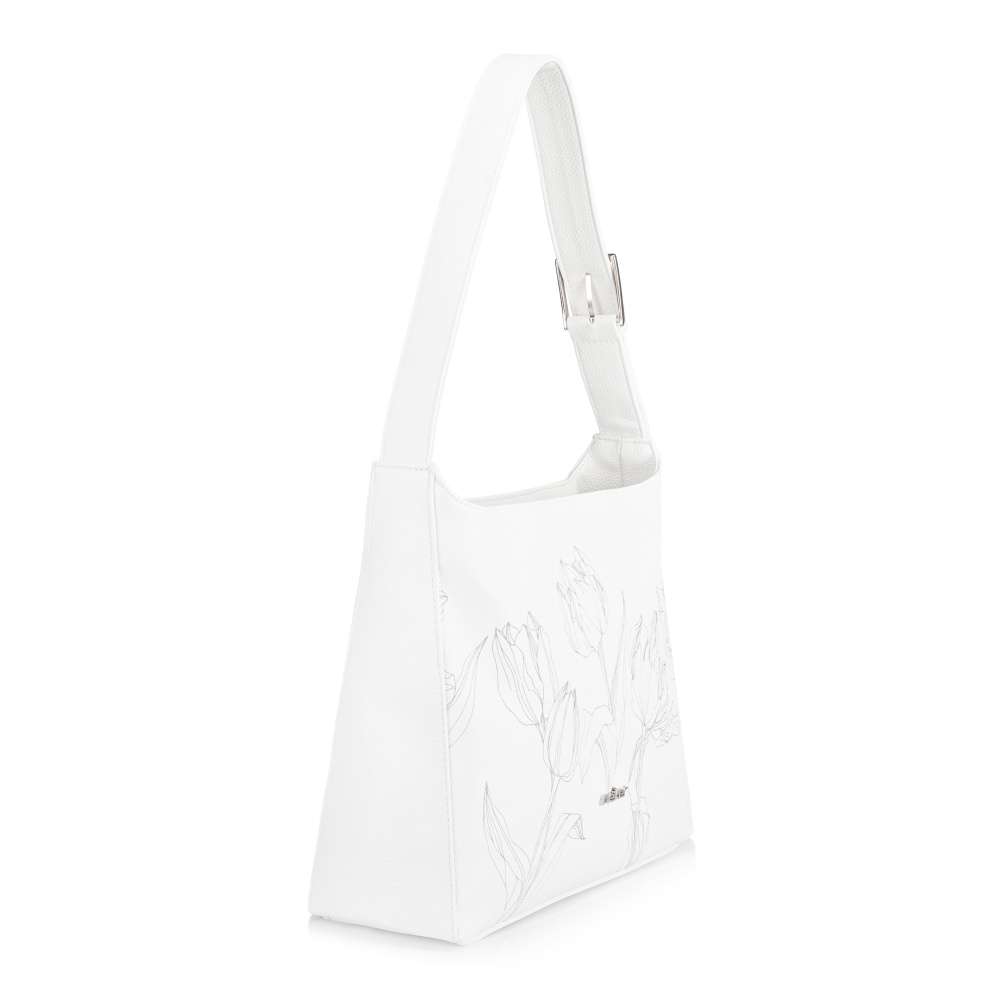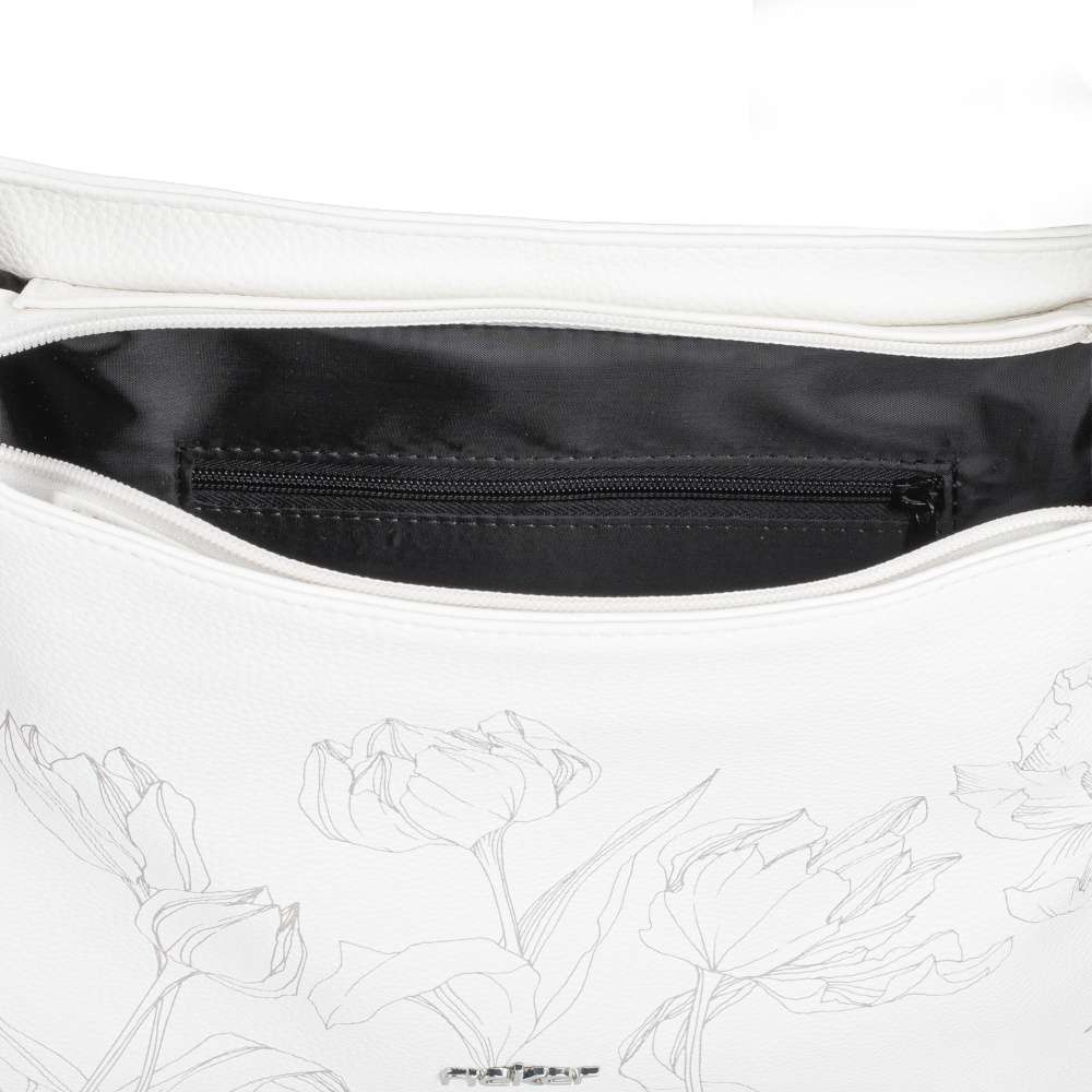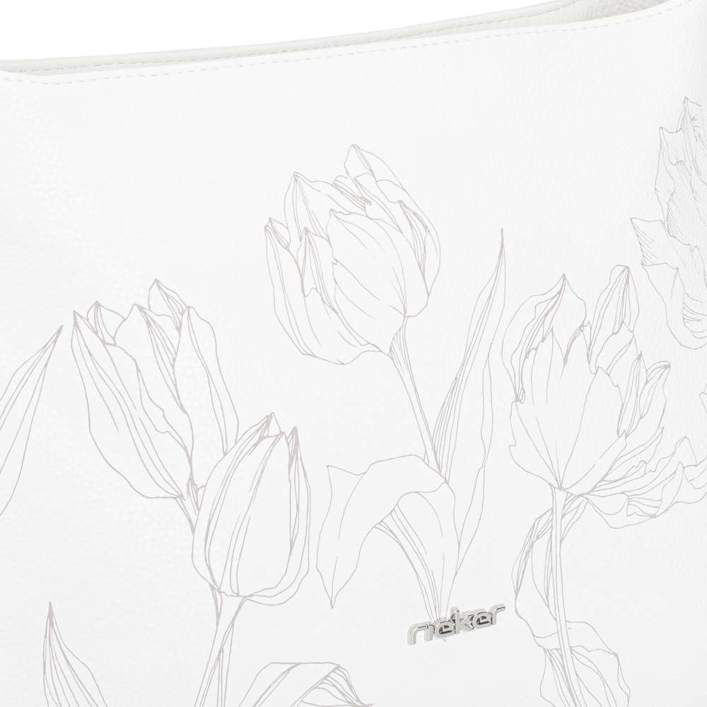Kabelka RIEKER je okouzlujícím doplňkem, který na první pohled upoutá svým svěžím bílým odstínem a romantickým tulipánovým vzorem vzkvétajícím po celém povrchu. Působí něžně, ale zároveň sebevědomě – přesně jako žena, která ji nosí. Design doplňuje stříbrné logo značky – decentní detail, který podtrhuje její výjimečnost. Kromě výjimečného vzhledu nabízí také praktické řešení pro každý den. Zadní kapsa se zipem poskytne rychlý přístup k drobnostem, zatímco hlavní prostor uzavíraný zipem ukrývá interiér s bezpečnou zipovou přihrádkou na cennosti a otevřenou kapsou na drobnosti. Výrazný popruh s dekorativní sponou nejen zaujme, ale zároveň zajistí pohodlné nošení přes rameno. Tato kabelka není jen praktickým kouskem - je to stylové vyjádření ženskosti, které rozzáří každý outfit a dodá vám pocit výjimečnosti při každém kroku.
