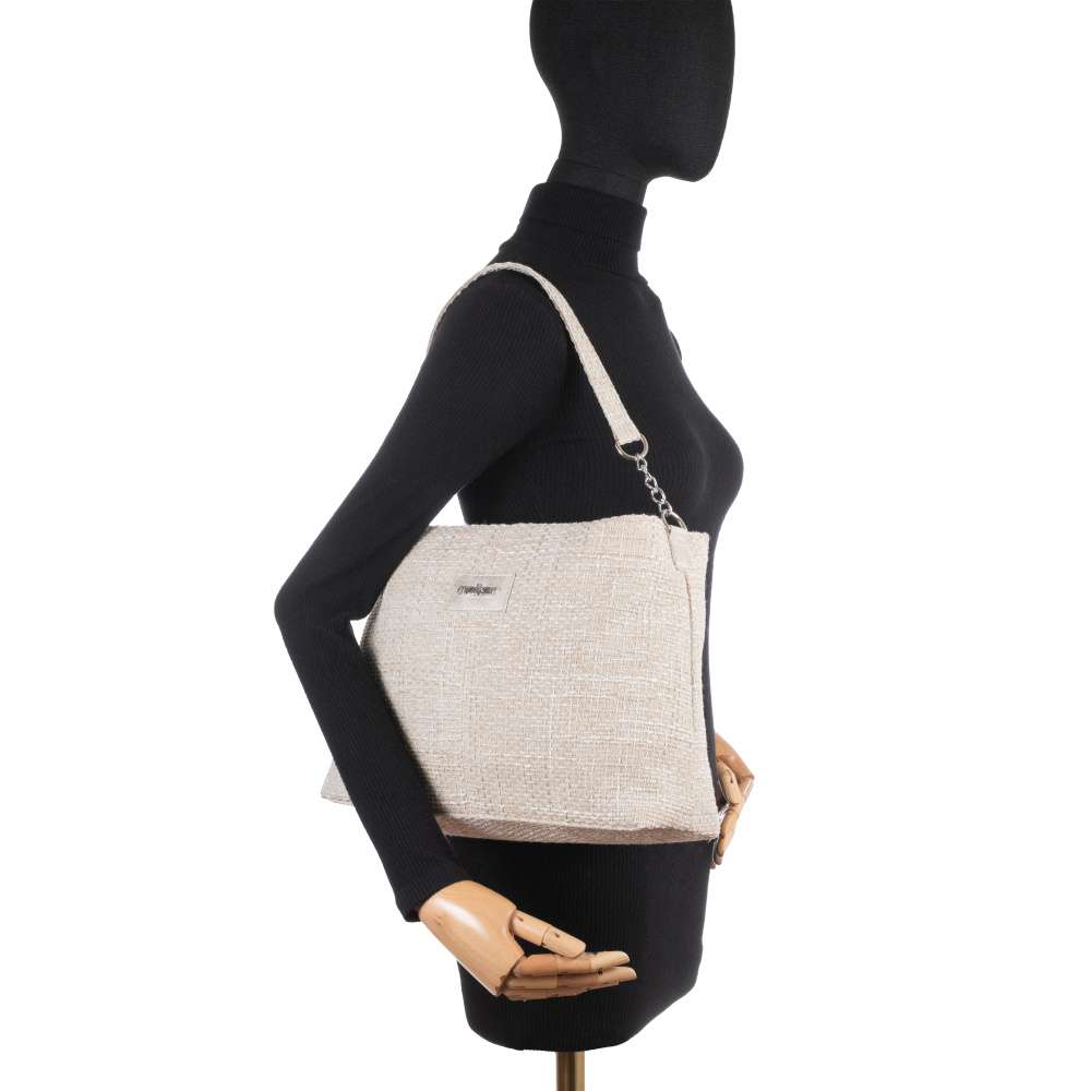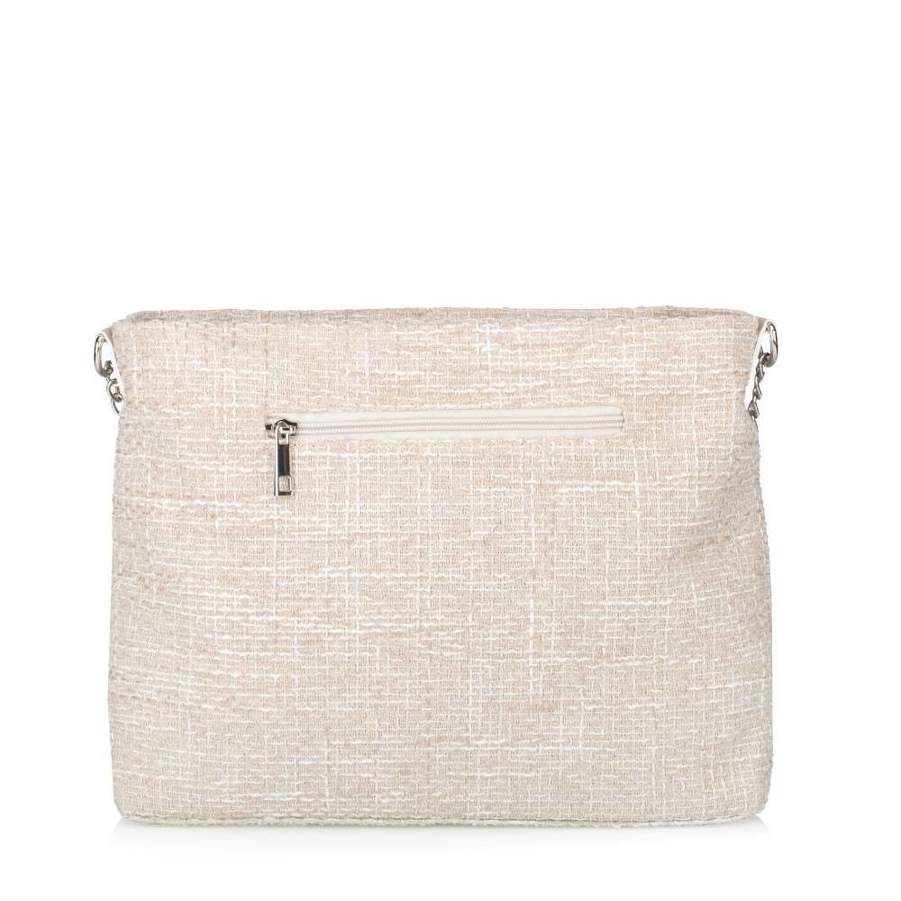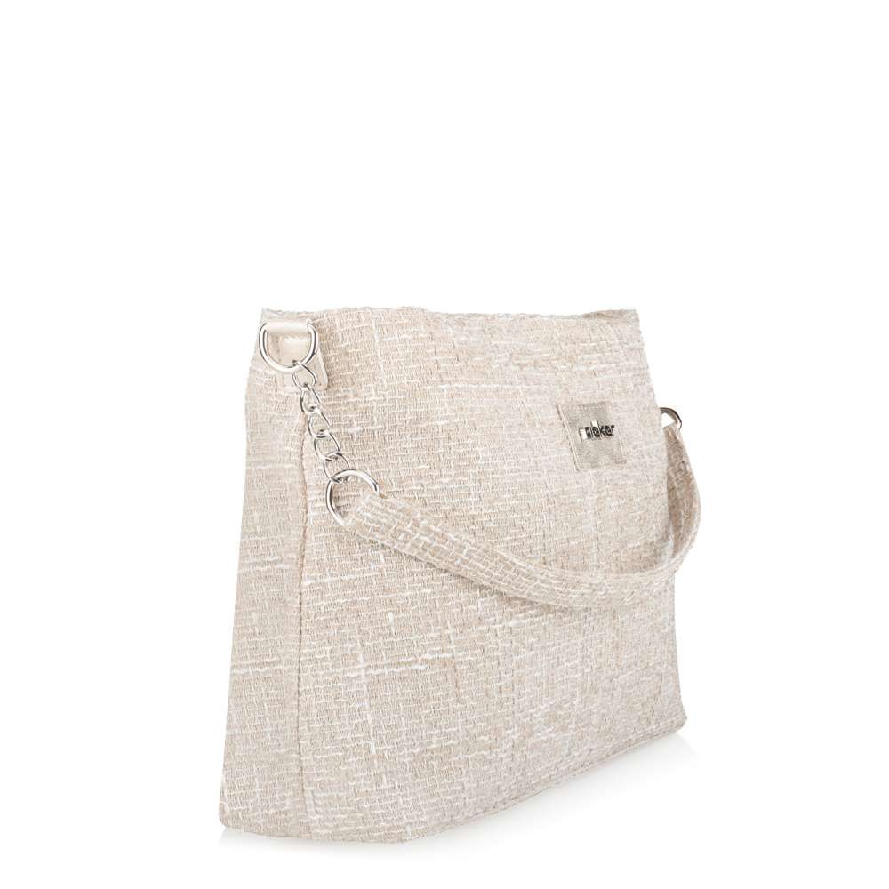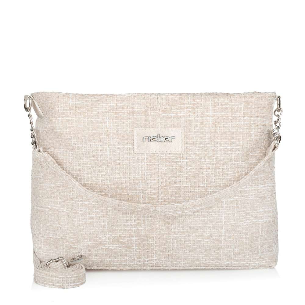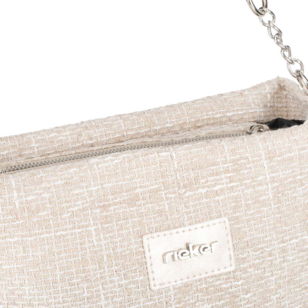 Kabelka značky RIEKER v jemném béžovém odstínu působí mimořádně stylově. Textilní materiál s decentní strukturou dodává modelu zajímavý vizuální efekt a přední část zdobí nášivka s logem značky ve stříbrné barvě, která kabelce dodává nádech originality. Kabelka je navržena s důrazem na každodenní komfort a praktičnost, aby vás doprovázela bez kompromisů. Zadní menší kapsička se zipem poskytne rychlý přístup k drobnostem, které chcete mít vždy po ruce. Vrchní zip bezpečně uzavírá vnitřní prostor, který je přehledně rozdělen středovou kapsičkou se zipem. V každé části najdete menší vnitřní kapsu, díky které zůstanou vaše osobní věci vždy uspořádány. O variabilitu nošení se starají dva popruhy – pevný popruh s elegantním řetízkem, který dodává kabelce ženský půvab, a odepínatelný, délkově nastavitelný popruh, díky kterému si můžete zvolit pohodlné nošení přes rameno nebo křížem přes tělo. Tato kabelka RIEKER je víc než jen doplněk – je stylovým společníkem, který dokonale doplní městský outfit, pracovní look i volnočasové kombinace.