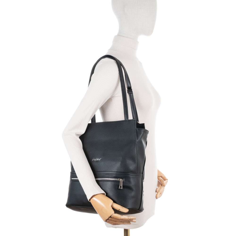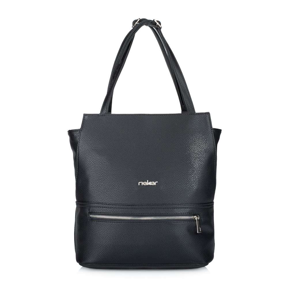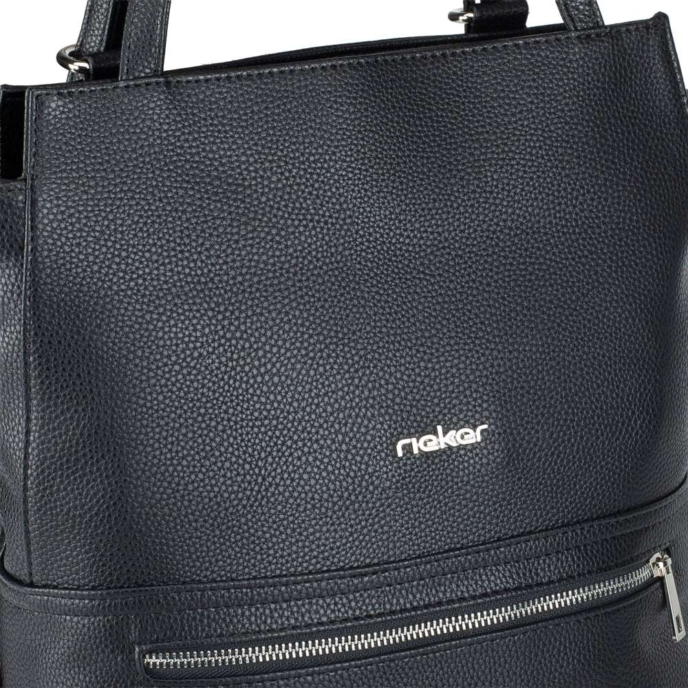 Batoh či kabelka? Tento výjimečný model značky RIEKER vám dává svobodu vybrat si – podle nálady, příležitosti i stylu. Díky dvěma nastavitelným popruhům jej můžete nosit tak, jak vám to právě vyhovuje, a vždy se cítit přirozeně a sebevědomě. Nadčasový černý svršek doplňuje decentní stříbrné logo, které podtrhuje jeho čistou estetiku. Přední i zadní kapsa nabízí praktický prostor na drobnosti, které chcete mít stále po ruce. Hlavní prostor uzavíraný zipem ukrývá dvě menší kapsy, aby byly vaše nezbytnosti vždy přehledně uspořádány a bezpečně uloženy. Spojení praktičnosti a univerzálního designu činí z tohoto modelu ideálního společníka na každý den, který podtrhne váš jedinečný půvab.