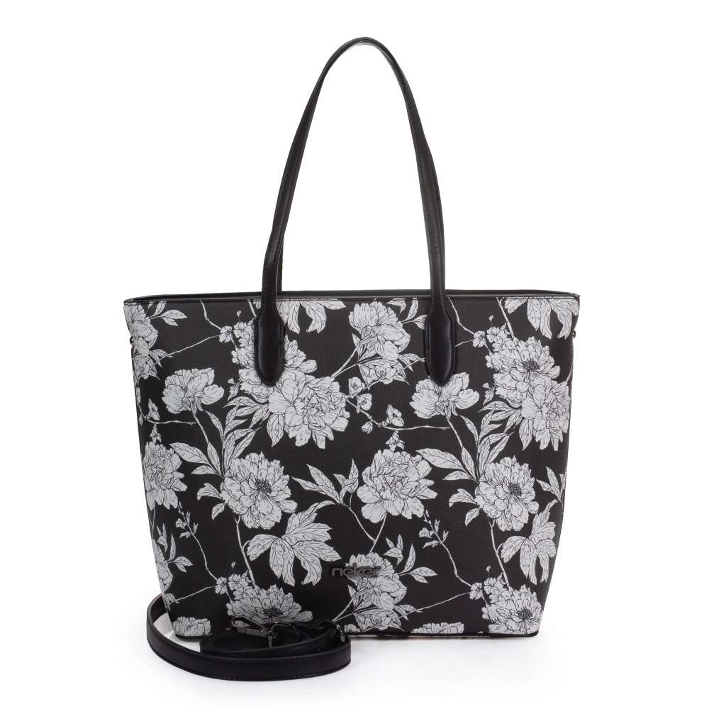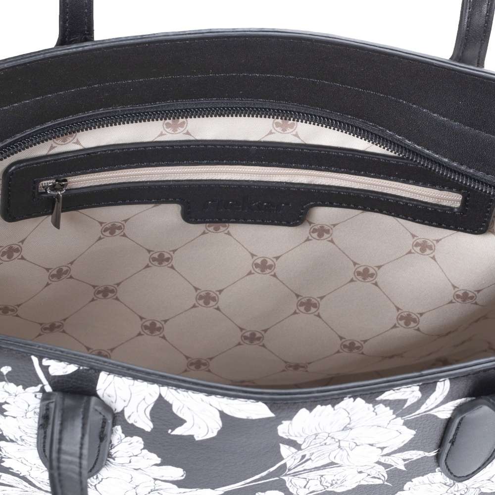 Tato velká dámská kabelka od značky Rieker Vás nadchne svým svrškem v černé barvě s květinovým vzorem. Ze zadní strany Vás určitě potěší malá kapsička sloužící k uložení různých drobnosti. Uzavírá se zipem, po jehož rozepnutí se Vám nabízí několik dalších kapes například na mobil nebo klíče. Má dvě ucha, ale také ramenní popruh, který si můžete nastavit na Vámi zvolenou délku či jej odepnout. Poslouží Vám jako skvělý doplněk do města na nakupování s kamarádkou. Rozměry: cca v 29 cm x š 39 cm Vnitřní uspořádání: kabelka není dělená Kabelka má délkově nastavitelný popruh, který lze odepnout.