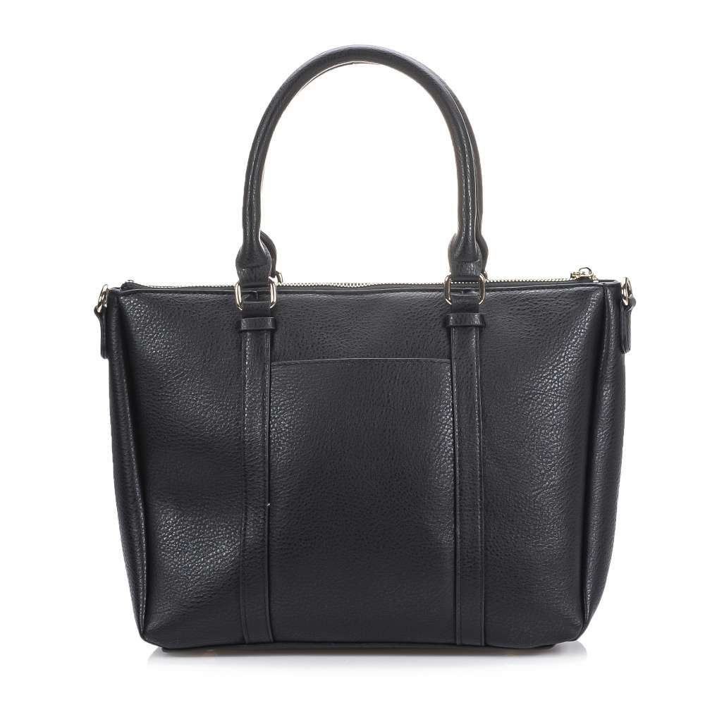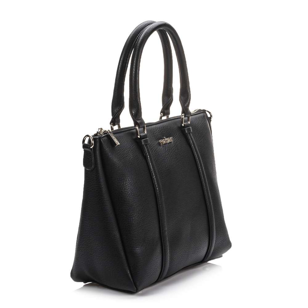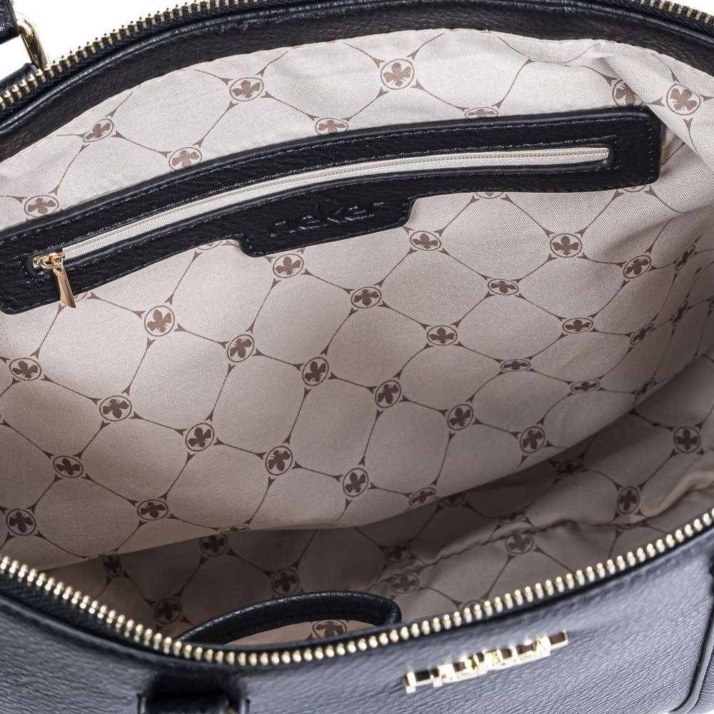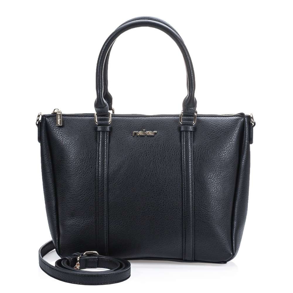 Tato módní dámská kabelka značky RIEKER Vás zaujme svou elegantností. Svršek v černé barvě je ozdoben vystouplými pruhy a zlatavými detaily, které dotváří dokonalý vzhled. Ze zadní strany Vás jistě potěší malá kapsička pro drobnosti. Taška se uzavírá zipem, po jehož rozepnutí naleznete několik dalších kapes například pro Váš mobil a klíče. Má dvě ucha, ale také širší ramenní popruh, který si můžete nastavit na Vámi zvolenou délku či jej odepnout. Poslouží Vám jako skvělý doplněk do města na nakupování s kamarádkou. Rozměry: cca v 26 cm x š 37 cm Vnitřní uspořádání: kabelka není dělená Kabelka má délkově nastavitelný popruh, který lze odepnout.