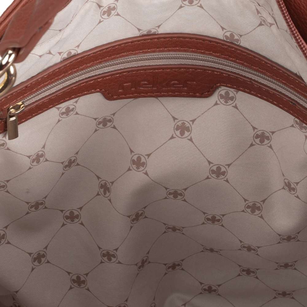 Svršek karamelové barvy s je doladěn z přední části nápisem Rieker a funkčním zdobným zipem.