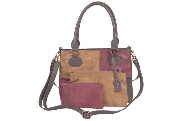 • detail Dámská kabelka se čtyřmi díly Q0410-25 / hnědo-vínová