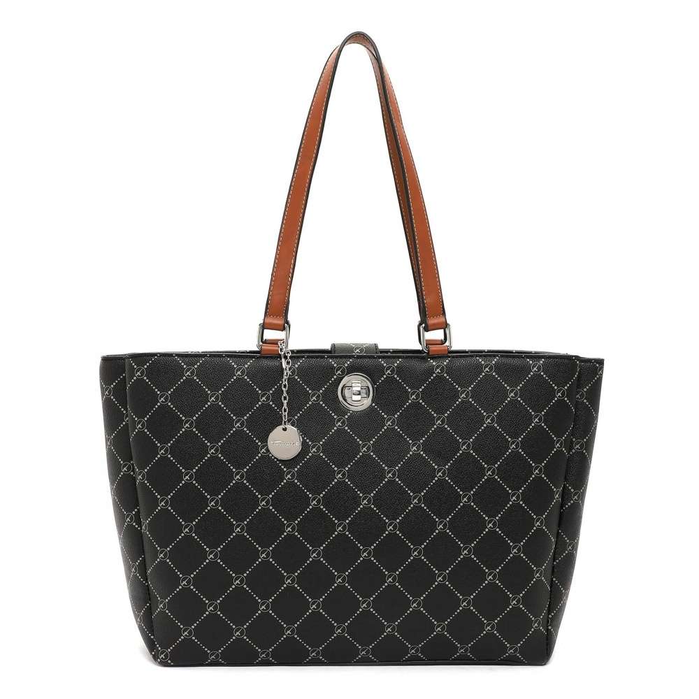 Sofistikovaná kabelka značky TAMARIS je vyrobena z jemného syntetického materiálu. Tato obchodní taška poskytuje dostatek prostoru pro všechny důležité dokumenty, a navíc vypadá opravdu elegantně. Ozdobný přívěšek s logem značky dodává extra akcent. Kabelka se uzavírá pomocí zámkového uzávěru. Vnitřní prostor je rozdělen středovým panelem, takže hledání věcí v tašce bude méně obtížné. Jako bonus najdete v tašce další kapsu, kterou je možné vyjmout a použít samostatně jako kabelku do ruky. Na Vaše drobnosti poslouží malé kapsičky na zip, které jsou uvnitř i na vnější straně kabelky. Pevnější materiál zajišťuje, že se důležité věci nemačkají. Tašku můžete nosit v ruce i přes rameno díky dvěma uchům. Pořiďte si tuto jedinečnou tašku a ukažte v kanceláři Vaše sebevědomí a charisma. Rozměry: cca v 28 cm x h 13 cm x š 45,5 cm Vnitřní uspořádání: kabelka je dělená