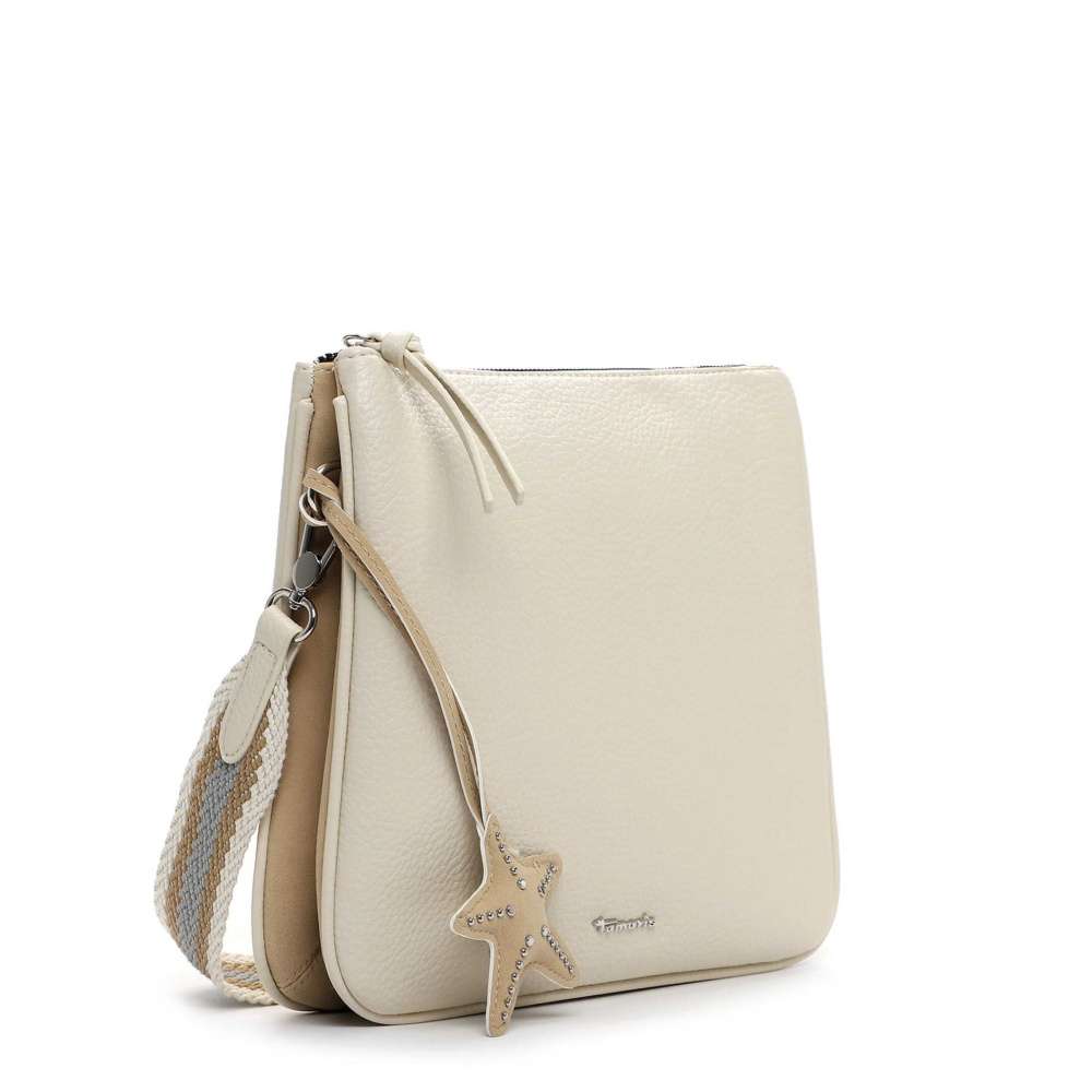 Detailní informace Kabelka značky Tamaris představuje nadčasový styl v moderním provedení, který s lehkostí zapadne do vašeho šatníku. Béžový svršek je doplněn stříbrným logem značky a výraznou hvězdicovou aplikací, která dodává kabelce osobitý charakter. Hlavní prostor uzavíraný zipem je rozdělen do dvou samostatných částí, z nichž každá obsahuje menší kapsičku pro bezpečné a přehledné uspořádání vašich osobních věcí. Zadní část kabelky je doplněna další menší kapsičkou, která poskytuje rychlý a diskrétní přístup k drobnostem. Odepínatelný a délkově nastavitelný popruh umožňuje variabilní nošení přes rameno nebo přes tělo, takže kabelku snadno přizpůsobíte aktuálním potřebám. Popruh navíc svým propracovaným vzhledem a barevným kontrastem vytváří působivý vizuální dojem. Tato kabelka je víc než doplněk – je to stylový společník, který spojuje praktičnost a módní výraz v jednom nadčasovém kousku.