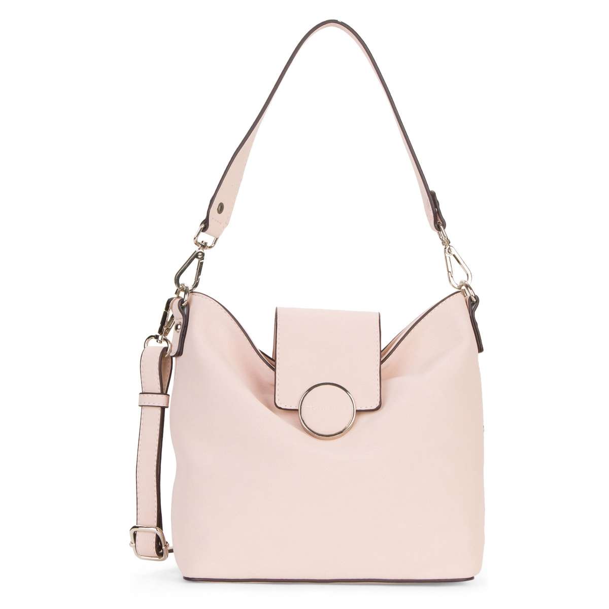 Jemná kabelka TAMARIS s designovou přední klopou a hladkým pudrovým povrchem.