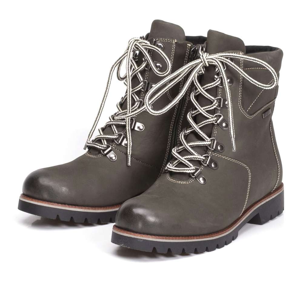 Tmavě zelená obuv se šněrováním a výrazným prošitím od značky CAPRICE je skvělou volbou do chladného počasí. Pro snadné obutí je na vnitřní straně použit funkční zip a tkaničky, díky kterým si můžete upravit velikost přímo na nohu. Ideální boty ke kalhotám a teplé zimní bundě.