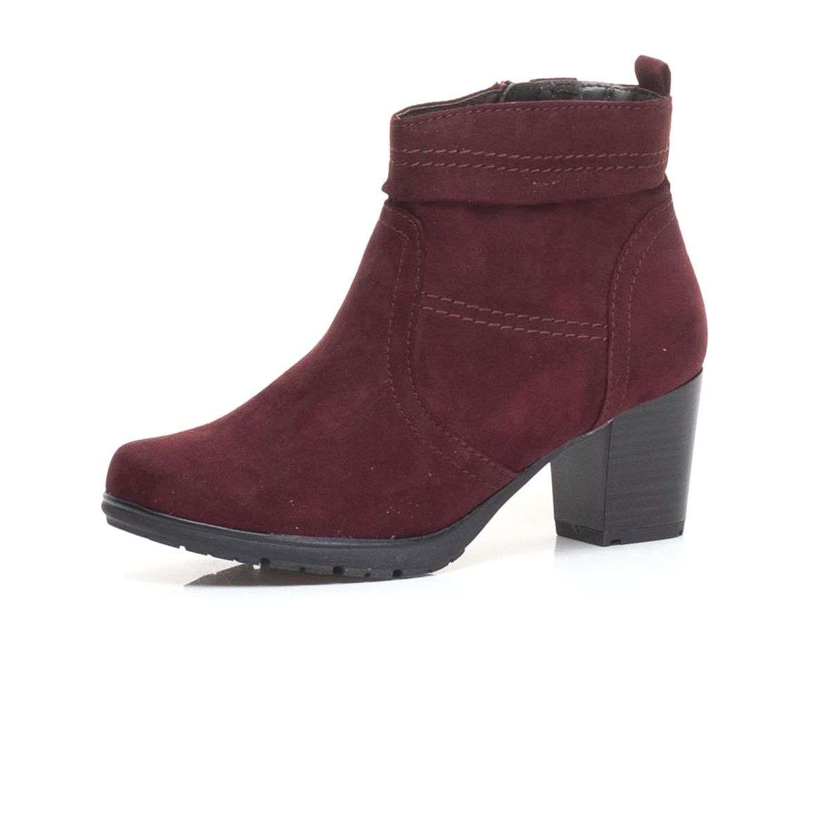 Svršek bot je vyrobený z textilie imitující broušenou kůži. Barva polokozaček je vínová. Jako zdobení mají prošití nití v černé barvě. Z vnitřní části mají po celé délce funkční zip pro snadnější nazouvání a zouvání boty. U horního okraje je svršek jemně zvrásněn jako okrasa..