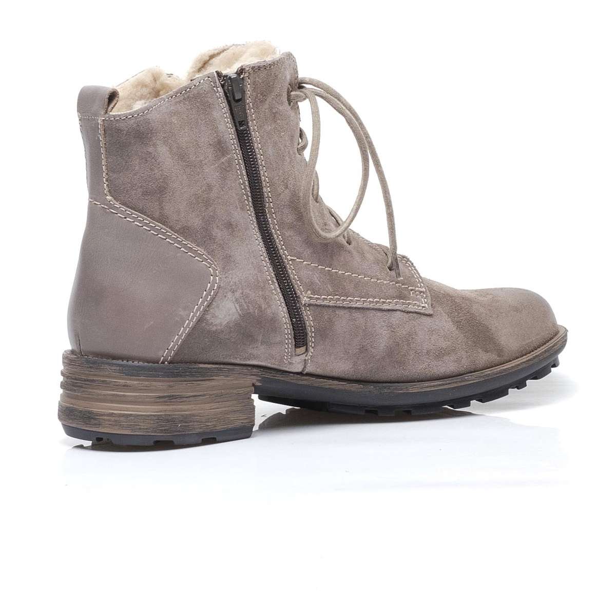Obuv je z broušené kůže s ozdobným zipem z vnější strany. Pro snadnější obutí je všitý funkční zip ze strany vnitřní. Nechybí ani šněrování pro ještě přesnější úpravu na Vaši nohu. Boty jsou zateplené kožíškem, který oceníte v chladnějších dnech.