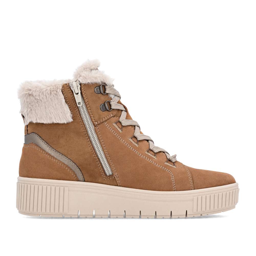 Obuv REMONTE – jedná se o vyšší řadu značky RIEKER, tato obuv se vyznačuje vynikající kombinací svrchních materiálů. Tento zimní model kotníkových bot RIEKER je navržen tak, aby spojoval stylový vzhled s praktickými vlastnostmi a funkčními prvky pro zajištění dokonalého komfortu. Hnědý svršek v působivé kombinaci materiálů působí moderně a zároveň univerzálně pro snadné kombinování s oblečením. Textilní lem při horním okraji, logo značky a atraktivní linie v metalickém provedení přidávají jemný vizuální detail, který zvýrazňuje celkový design. Funkční TEXová membrána chrání před vlhkostí, zatímco hřejivá podšívka z ovčí vlny a termo stélka zajišťují teplo i během mrazivých dnů. Šněrování v kombinaci s bočním zipem zaručuje pohodlné obutí a vyšší podešev poskytuje stabilitu při každém kroku. Tyto kotníkové boty budou ideální společník do zimních dnů, který zvládne každodenní nošení se stylem a komfortem. Technologie: Remonte TEX – funkční vrstva, díky které je svršek boty nepromokavý a přesto prodyšný. Remonte Soft – unikátní stélka vyrobená z prodyšného materiálu, která svým tvarem a materiálem zajistí pocit pohodlí při celodenním nošení. Thermo stélka – ze spodní strany je hliníková fólie, která poskytuje výborné termoizolační vlastnosti a chrání tak chodidlo před chladem. Tato bota je vybavena vyjímatelnou stélkou. Podšívka je vyrobena z pravé ovčí vlny.