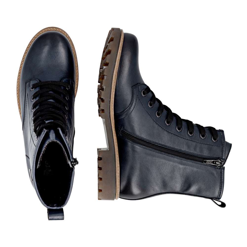 Obuv REMONTE – jedná se o vyšší řadu značky RIEKER, tato obuv se vyznačuje vynikající kombinací svrchních materiálů. Čisté linie a jedinečný vzhled – to jsou kotníkové boty RIEKER, které svým tmavě modrým svrškem s nepromokavou vrstvou zajistí komfort při nepříznivém počasí. Boční zip umožňuje snadné obutí a šněrováním si boty upravíte k dokonalému pohodlí, zatímco vyjímatelná stélka příjemně měkká a textilní podšívka se postarají o celodenní komfort. Podešev v trendovém provedení vytváří moderní vzhled a zároveň zaručuje stabilitu při chůzi. Stylový společník pro ženy, které chtějí iv nepříznivém počasí vyniknout svojí jedinečností. Technologie: Remonte TEX – funkční vrstva, díky které je svršek boty nepromokavý a přesto prodyšný. Remonte Soft – unikátní stélka vyrobená z prodyšného materiálu, která svým tvarem a materiálem zajistí pocit pohodlí při celodenním nošení. Tato bota je vybavena vyjímatelnou stélkou.