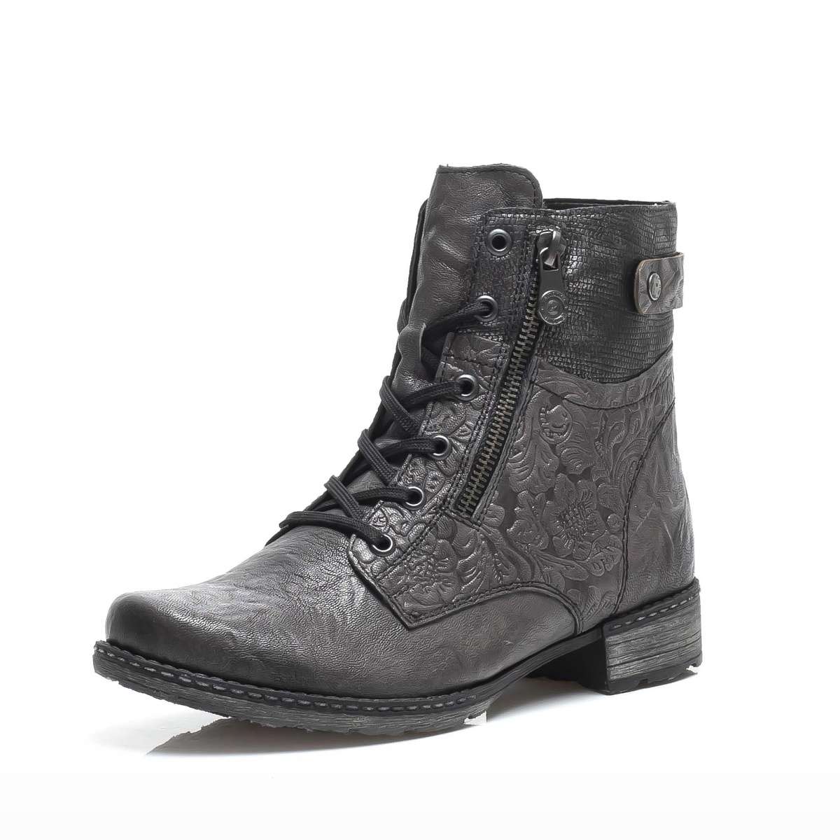 Zimní dámská kožená kotníková obuv šedé barvy, značky REMONTE (jedná se o vyšší řadu značky RIEKER).