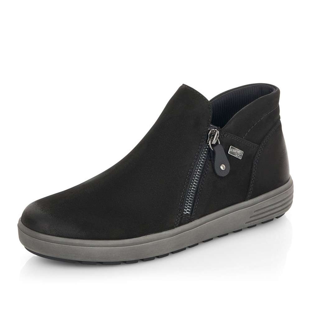 Dámská kožená kotníková obuv značky REMONTE (vyšší řada značky Rieker) s hladkým svrškem a kulatou špičkou.