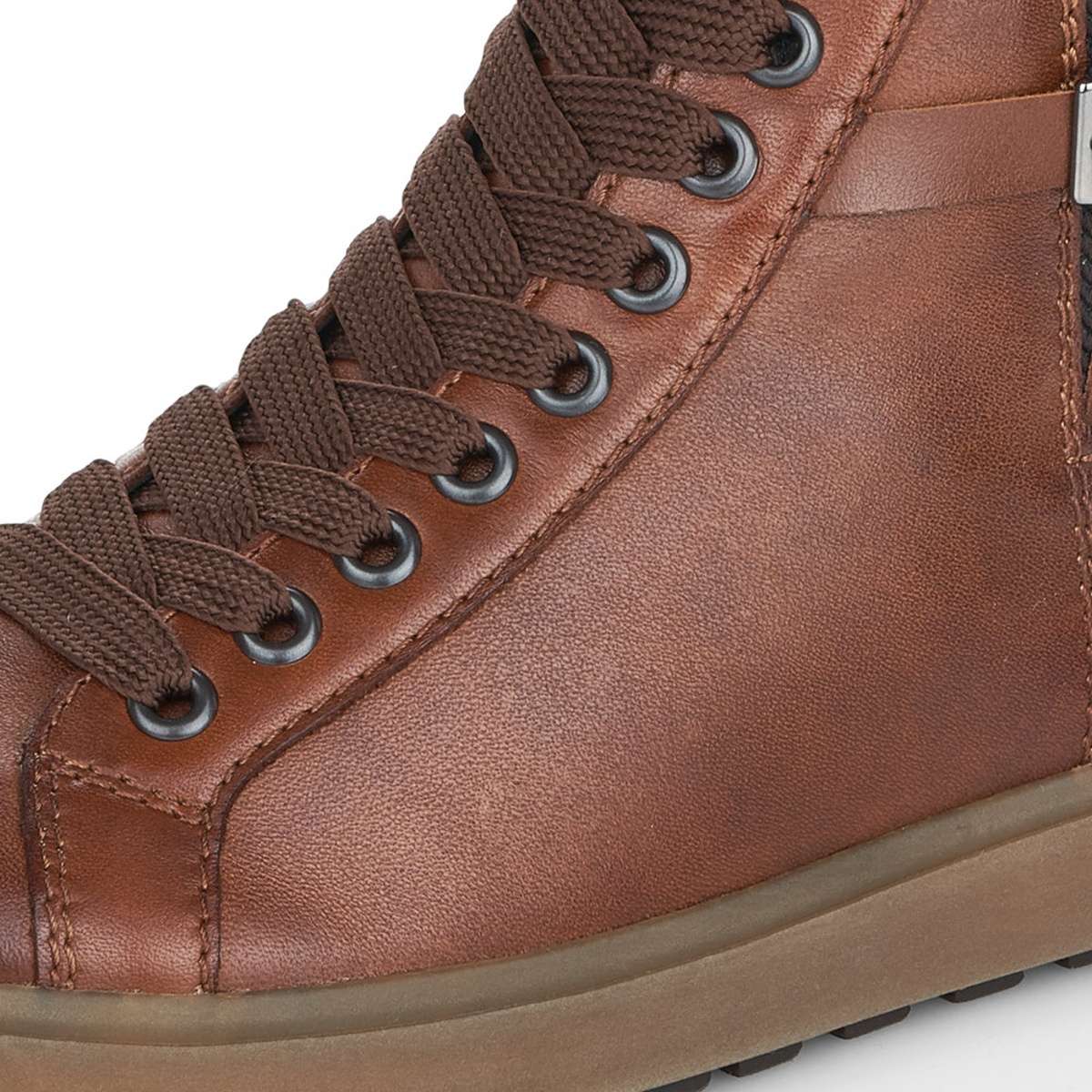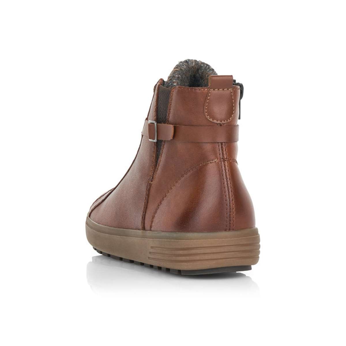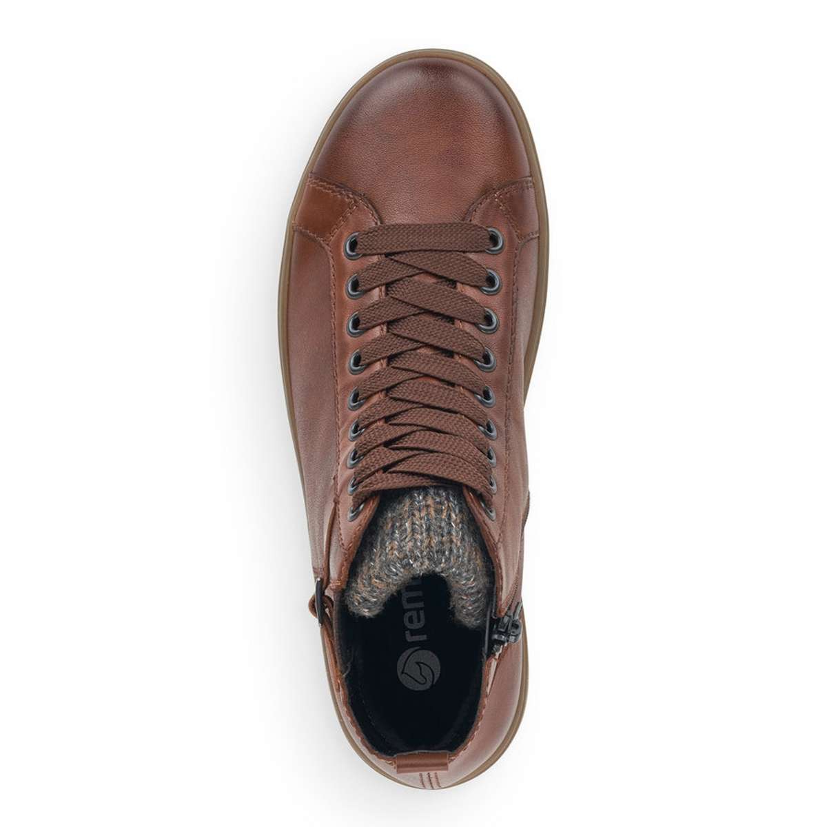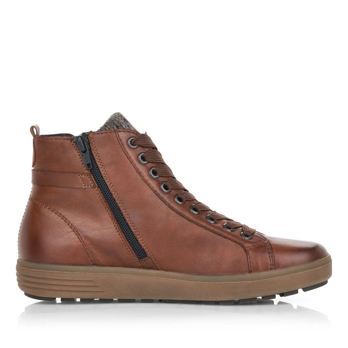 Dámské kotníkové tenisky značky REMONTE (vyšší řada značky Rieker) s pletenou ozdobou na jazyku. Svršek z vnější strany zdobí pásek s přezkou a gumička. Pro snadnější obouvání slouží kromě gumičky také šněrování a funkční zip na vnitřní straně. Tato obuv je vybavena vyjímatelnou stélkou, která je vyrobena z unikátní paměťové pěny, a proto se maximálně přizpůsobí tvaru Vašeho chodidla. Pevná podešev vysoká cca 3 cm a měkká stélka Vám zaručí pohodlí po celý den.