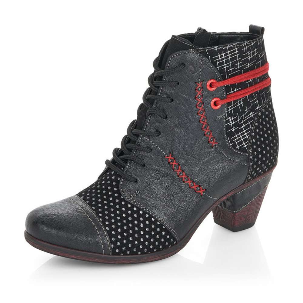 Obuv REMONTE je vyšší řadou značky RIEKER, obuv se vyznačuje kvalitou použitých materiálů, komfortnější šířkou a nadměrnými velikostmi. Dámská kotníková obuv extravagantního vzhledu díky unikátním designovým prvkům na svršku. Z vnitřní strany je funkční zip pro snadné prozutí. Šněrováním si pak obuv upravíte dle svých požadavků. Boty z řady Remonte Vám zajistí maximální komfort při celodenním nošení.