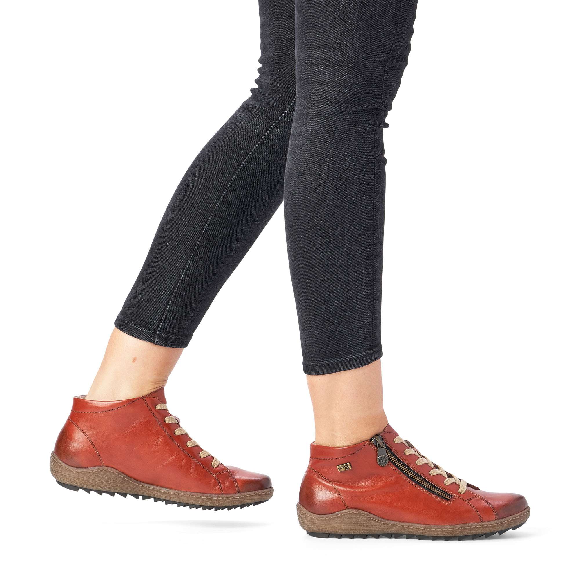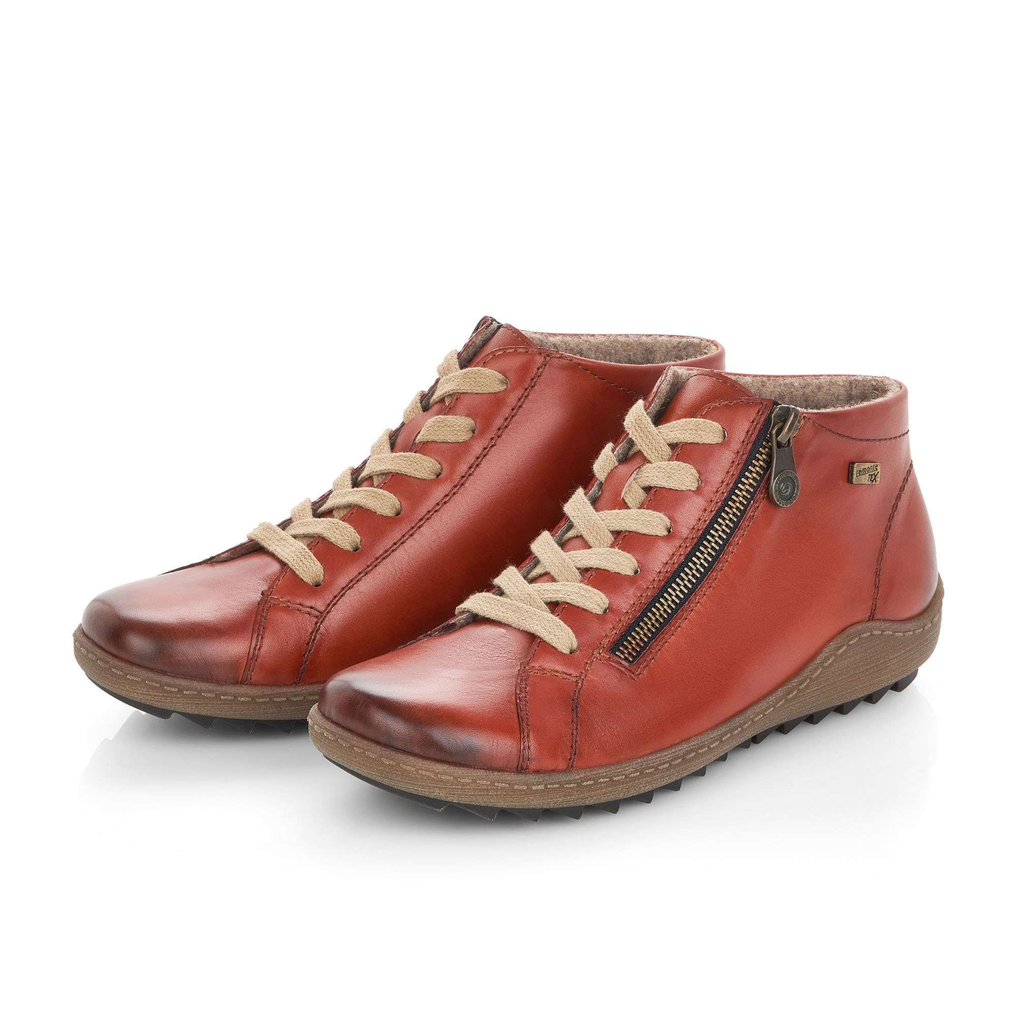 Dámský kožený kotník s textilním zateplením je ideální volbou na chladnější dny. Díky jedinečné funkční vrstvě Remonte TEX je obuv nepromokavá, ale přesto prodyšná. Nazutí Vám usnadní zip z vnější strany kotníku a šněrováním si boty přizpůsobíte na Vaši nohu. Boty z řady Remonte Vám zajistí maximální komfort a pohodlí při celodenním nošení a tento model je vhodný snad ke všem pracovním i běžným outfitům.