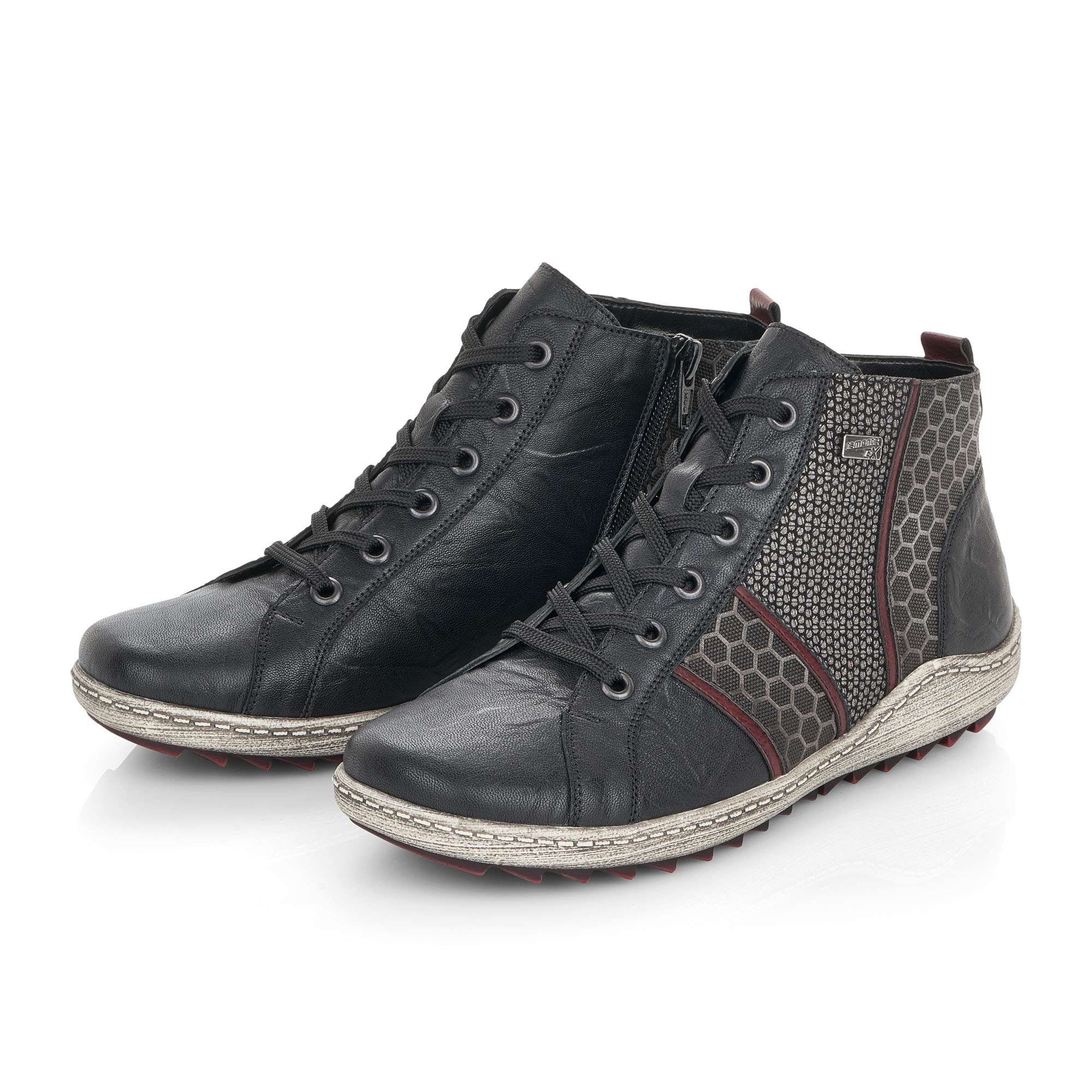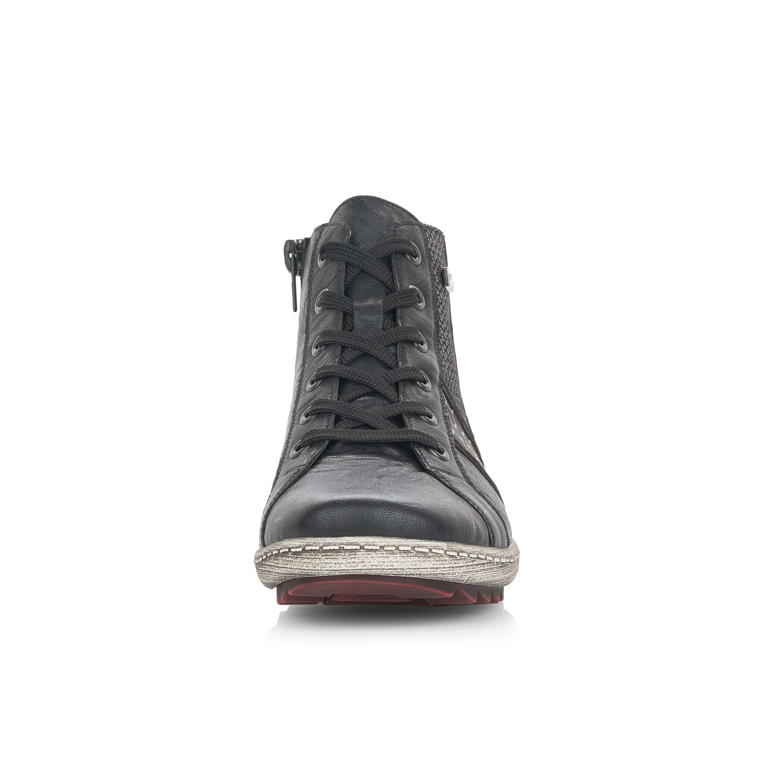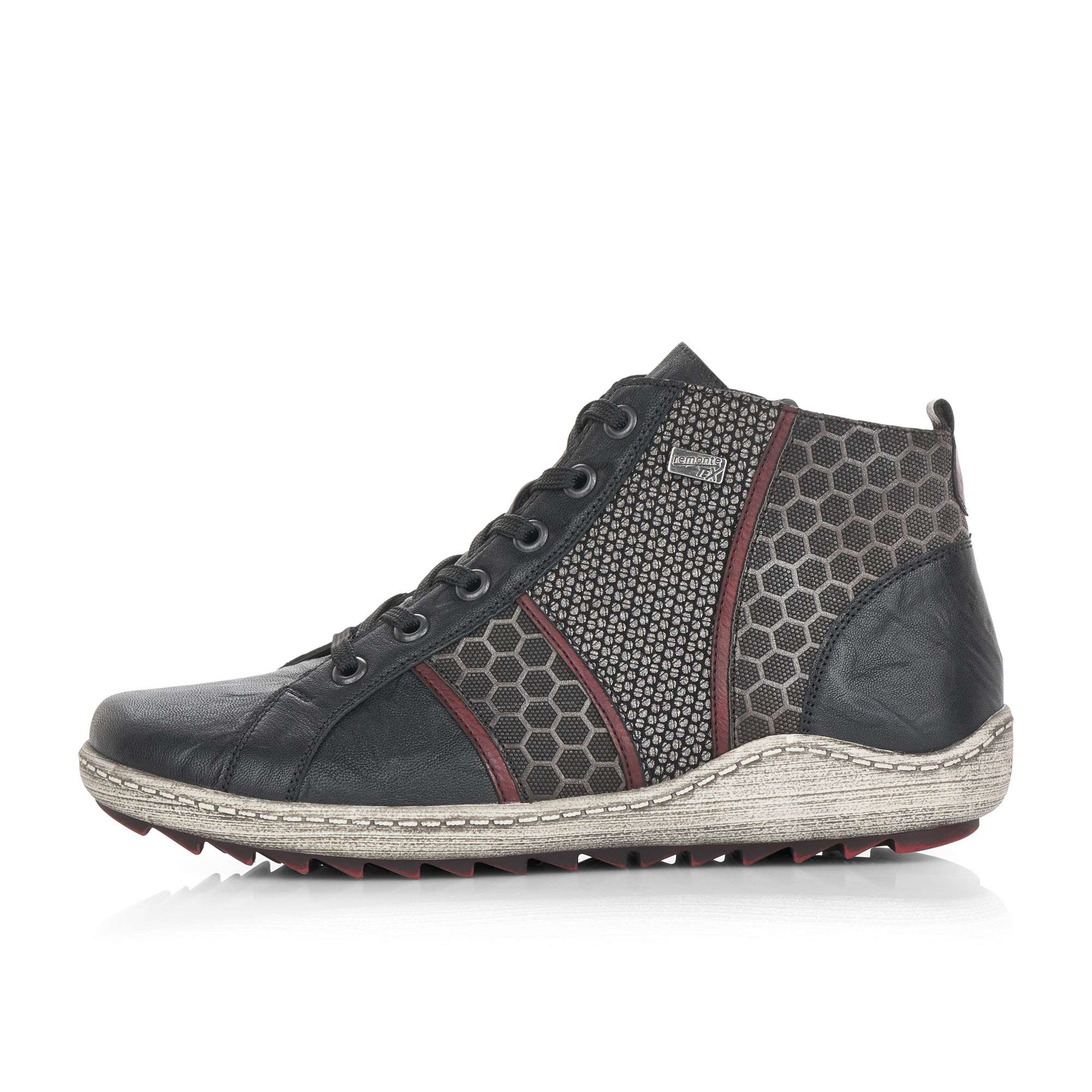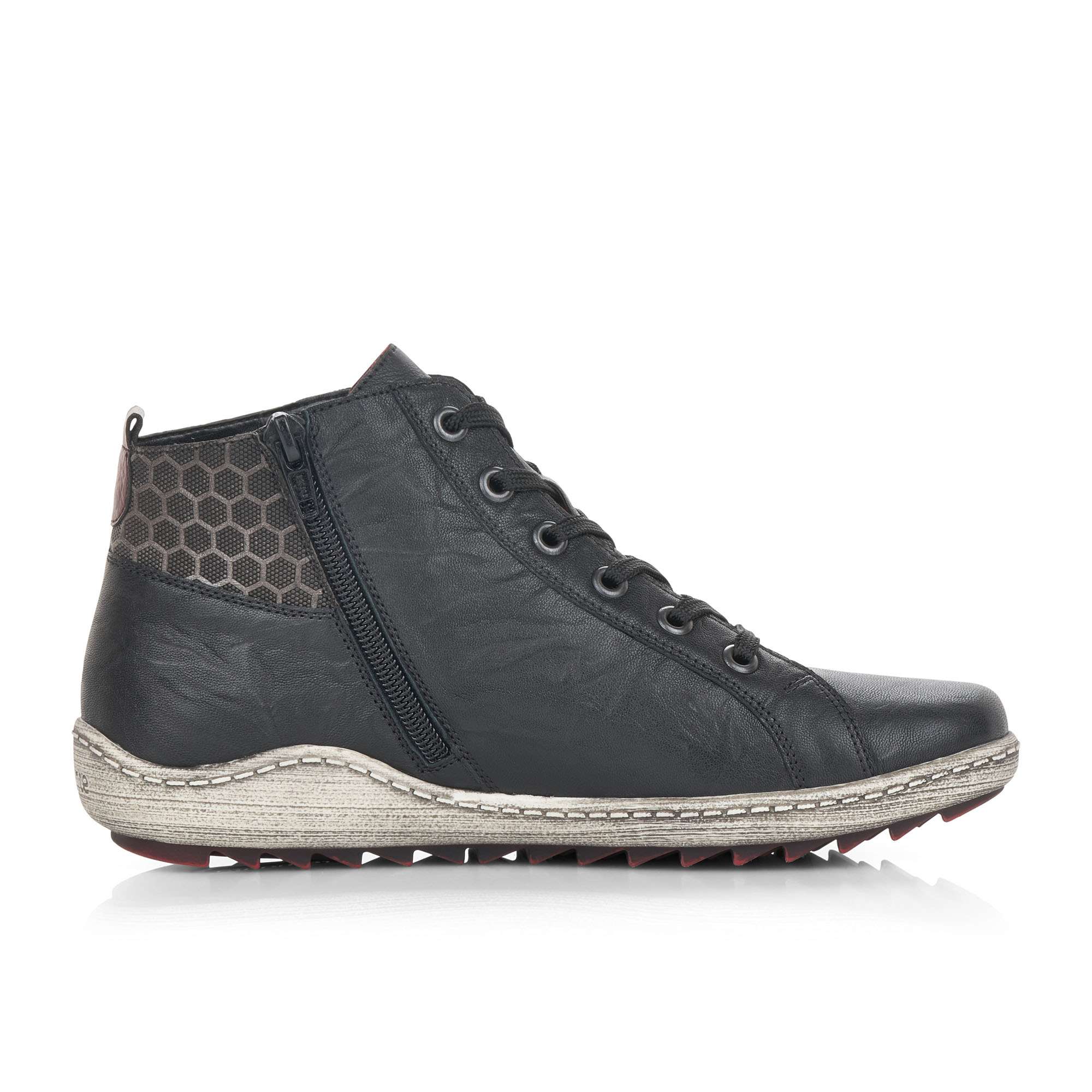 Dámská kotníková obuv šitá z pravé kůže doplněná kvalitními syntetickými prvky, značky REMONTE (jedná se o vyšší řadu značky RIEKER).