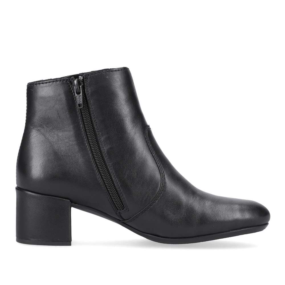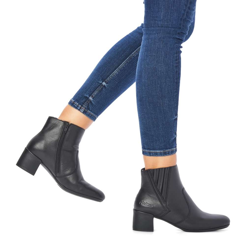 Dámské botičky značky RIEKER. Mají hladký povrch, který je ozdoben šitím a logem RIEKER, ten obuvi dodává jemný a zároveň zajímavý vzhled. Obuv má na boční straně funkční zip, který Vám usnadní obutí i vyzutí. Pocit pohodlí i v chladných dnech Vám zajistí teplá podšívka, v které se budete cítit úžasně. K těmto botám si můžete vzít buď kalhoty či teplou sukni a vyrazit s kamarádkami na kávu, nebo je můžete doplnit krásnou kabelkou z naší široké nabídky. Technologie: Antistress – podešev je díky této technologii lehká, flexibilní, absorbuje nárazy při došlapu a snadno se přizpůsobí každé noze.