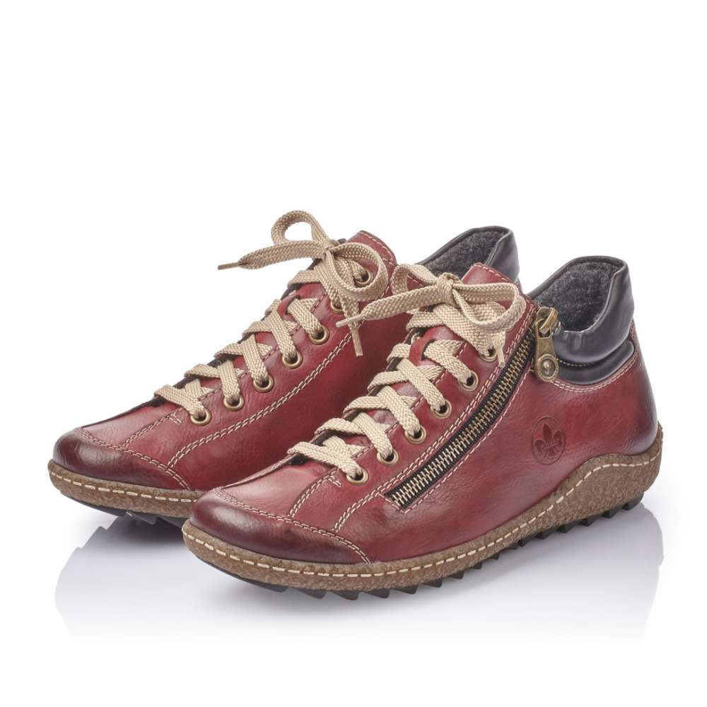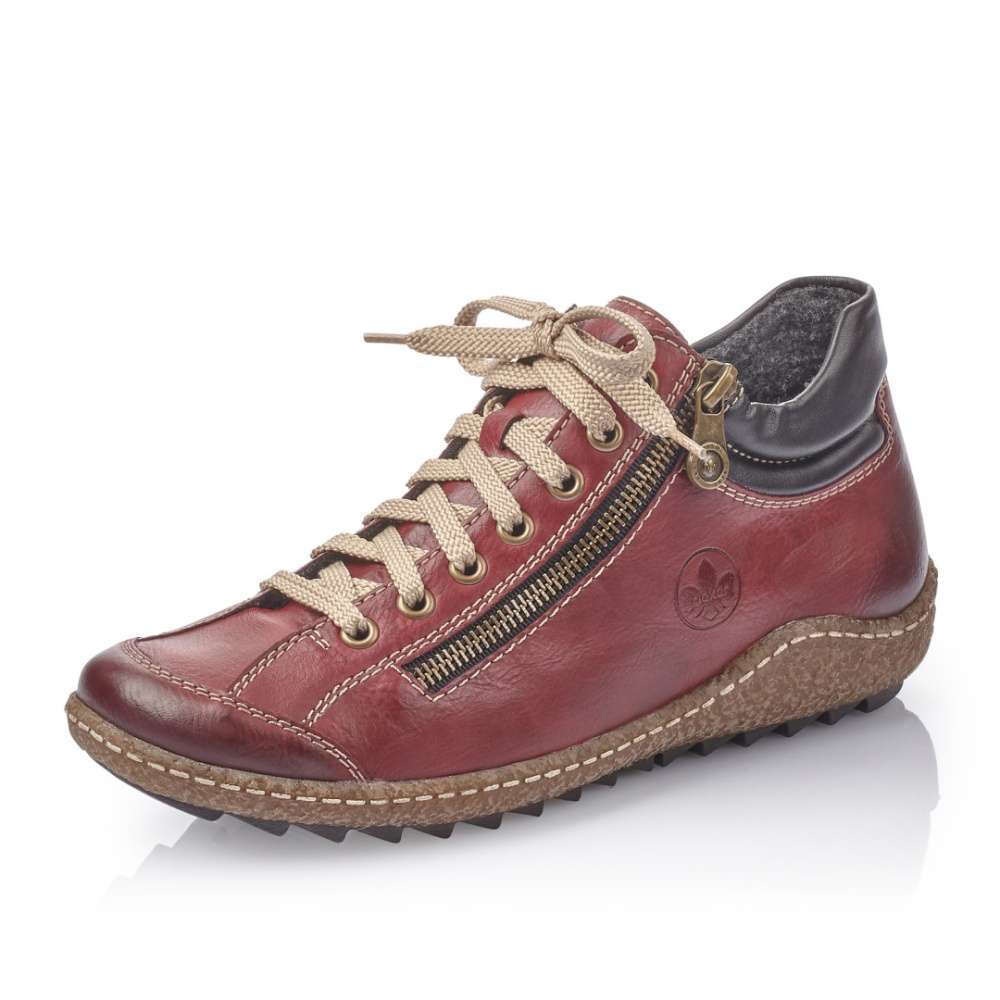 Zdobené jsou logem značky Rieker i zipem na vnější straně a kostkovaným materiálem kolem kotníku. Šněrováním si pak upravíte obuv přímo k Vaší noze. Podešev s hrubším vzorkem Vám zaručí pohodlí a bezpečnost zároveň.