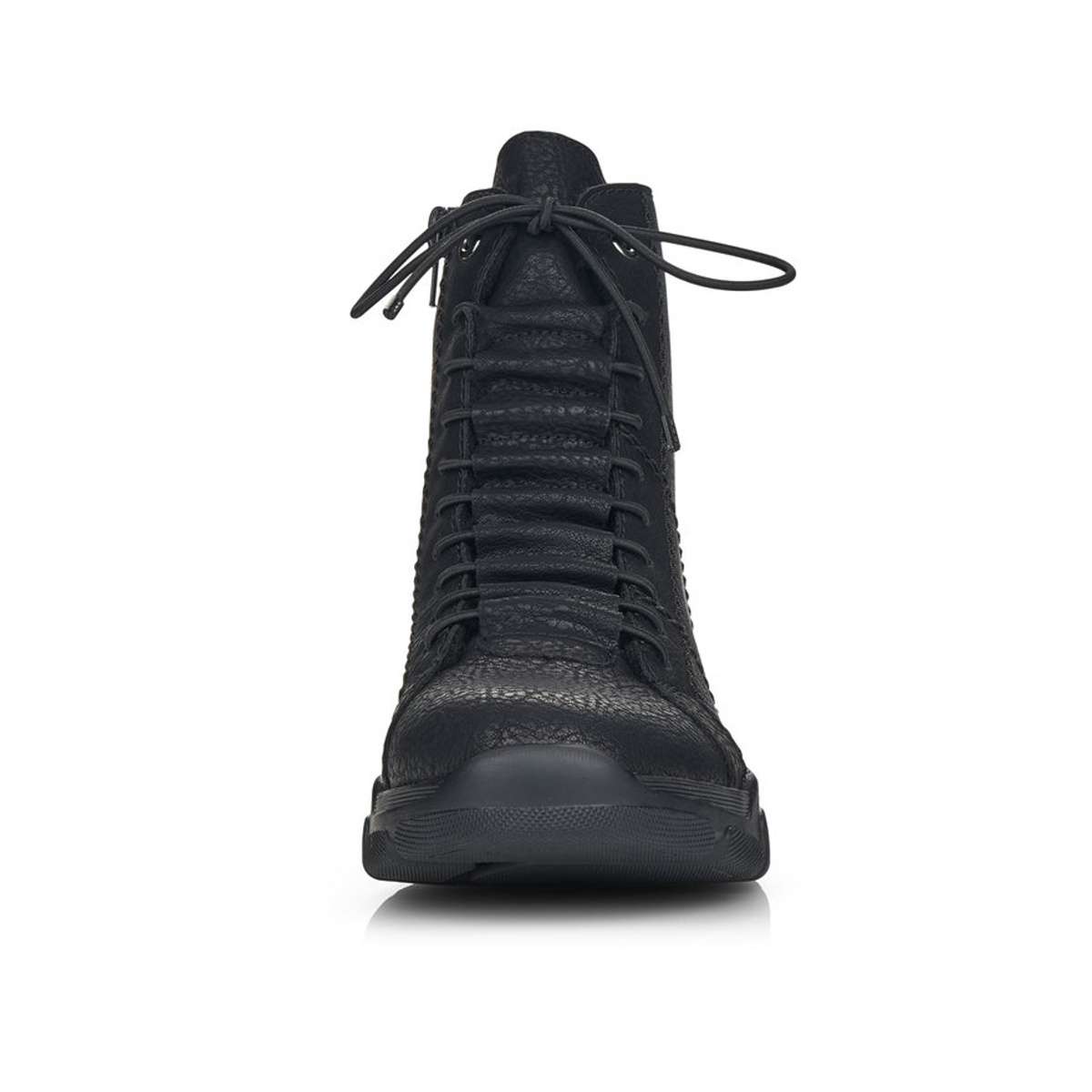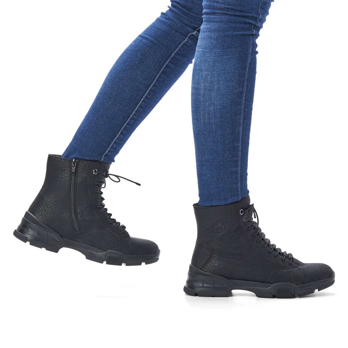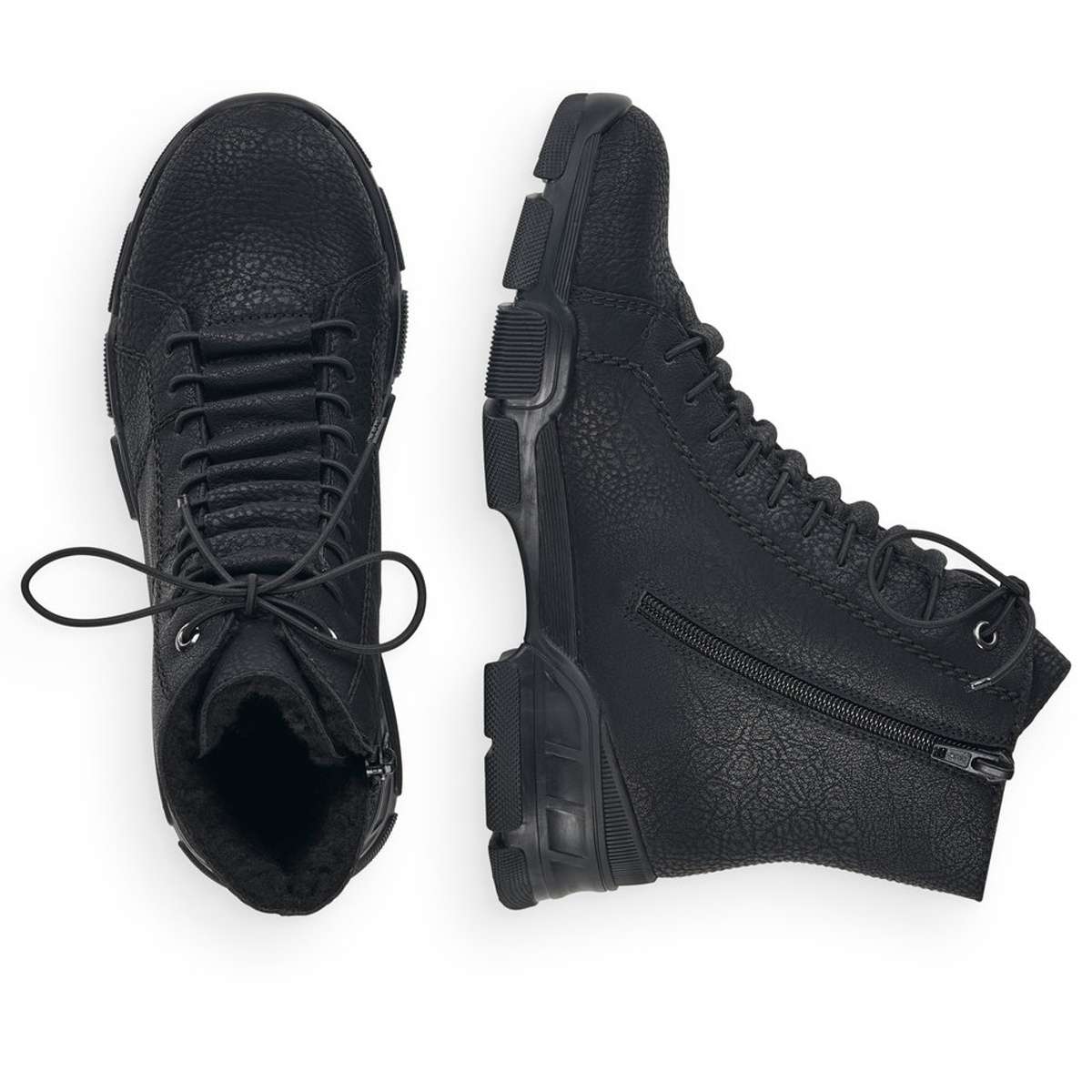 Dámská nadčasová kotníková obuv značky RIEKER Vás zaujme na první pohled. Hladký svršek je zdoben jemným prošíváním a zajímavým šněrováním pružnou tkaničkou. Pro snadné obutí poslouží funkční zip na vnitřní straně obuvi. Díky teplé podšívce budou Vaše nohy v teple i během chladných dnů. Technologie: Obuv je vybavena teplou podšívkou. Antistress – podešev je díky této technologii lehká, flexibilní, absorbuje nárazy při došlapu a snadno se přizpůsobí každé noze.