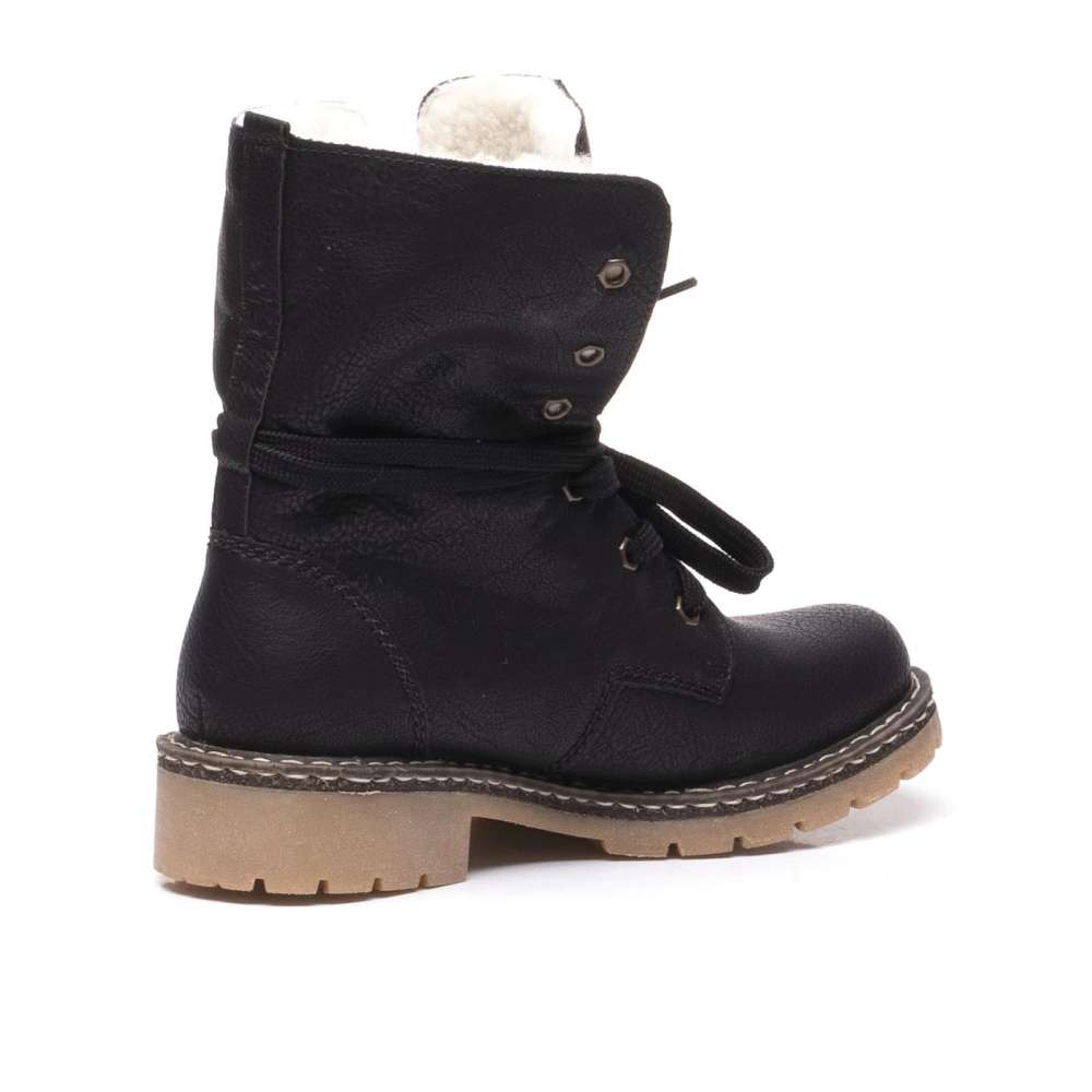 Dámská kotníková obuv vyrobená z pravé kůže v černé barvě má kulatou špičku, technologii RiekerTex což je funkční vrstva, podšívku z pravé ovčí vlny a šněrování, kterým si upravíte obuv přímo k vlastní noze. Tato kotníková obuv je vhodná jak do práce, tak na volný čas.