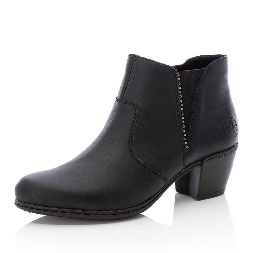 Kožený kotník černé barvy na nízkém podpatku s paměťovou stélkou, značky RIEKER.