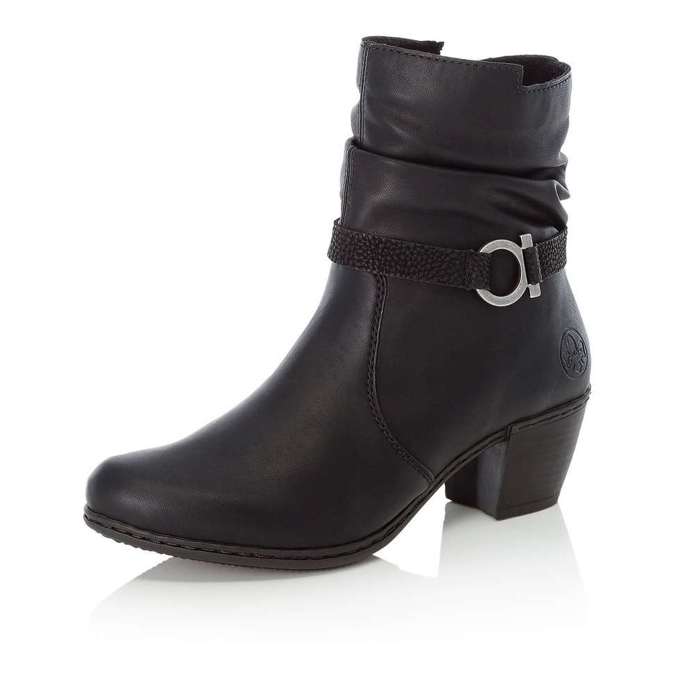 Vyšší kotníková obuv v jednoduché černé barvě, značky RIEKER.