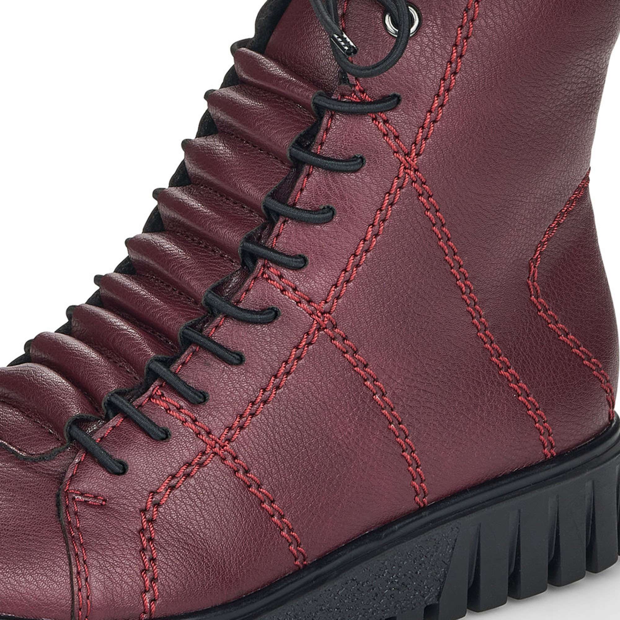 Na první pohled zaujmou tyto dámské boty svým svrškem, který je zdoben výrazným prošitím, což vytváří na obuvi zajímavé linie. Netradiční šněrování pomocí gumičky a funkční zip na vnitřní straně slouží pro snadné nazouvání.