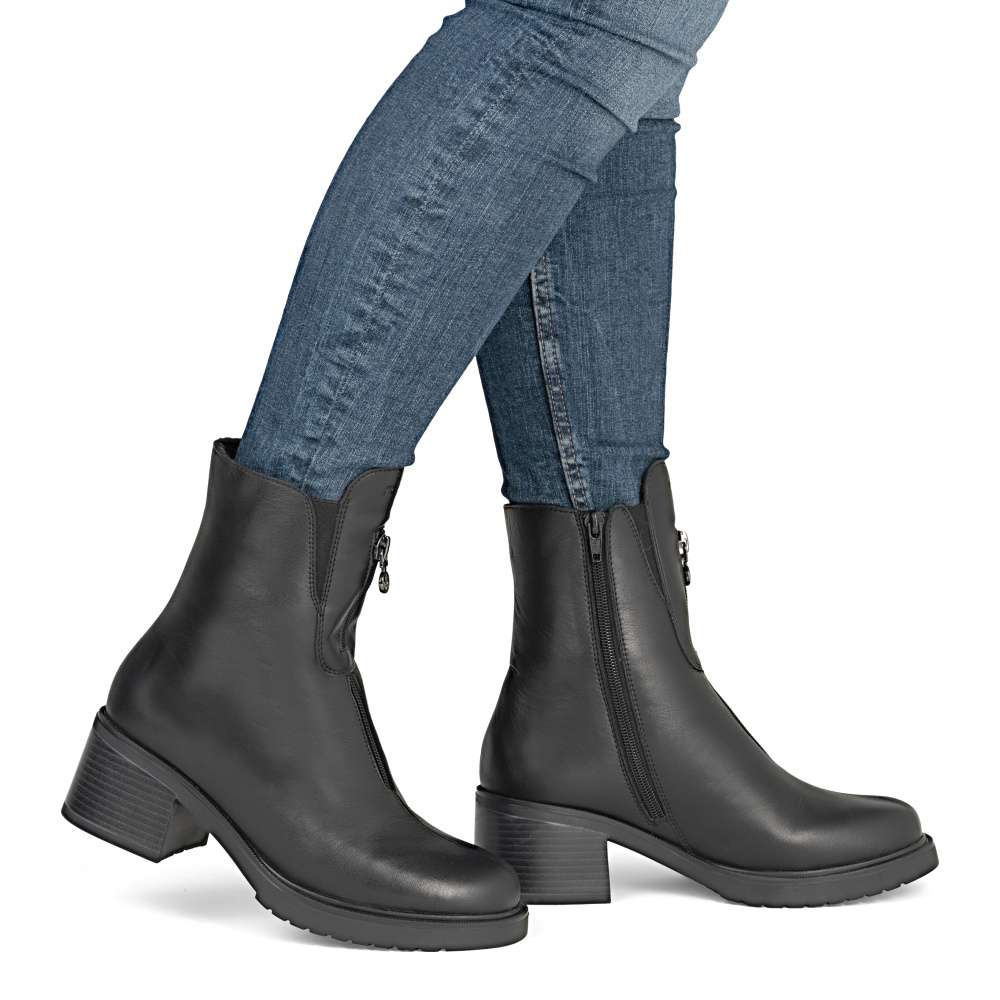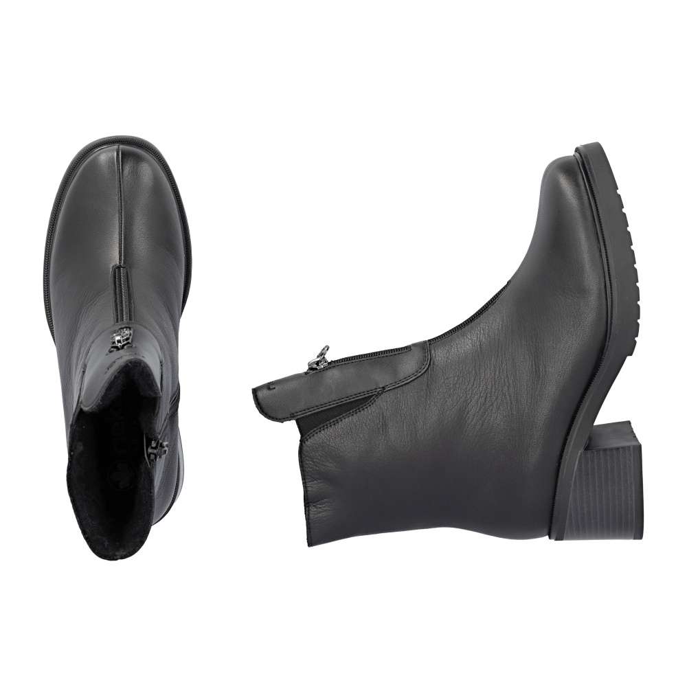 Kožené boty RIEKER v nadčasovém stylu zaujmou módním designem a praktickými detaily. Dekorativní zip v oblasti nártu a logo značky dodávají modelu moderní vzhled, zatímco pružná vsazená gumička při horním okraji a boční funkční zip umožňují snadné obutí. O teplo během zimních dnů se postará podšívka z pravé ovčí vlny. Nízký podpatek a podešev s technologií tlumící nárazy zaručují pohodlí během celodenního nošení. Tento model je ideální pro ženy, které hledají stylovou a zároveň funkční obuv pro zimu. Technologie: Antistress – díky čtyřem antistresovým vlastnostem – lehkosti, pružnosti, prostornosti a vynikající absorpci nárazů – vám boty RIEKER nabídnou komfortnější chůzi. Podšívka je vyrobena z pravé ovčí vlny.