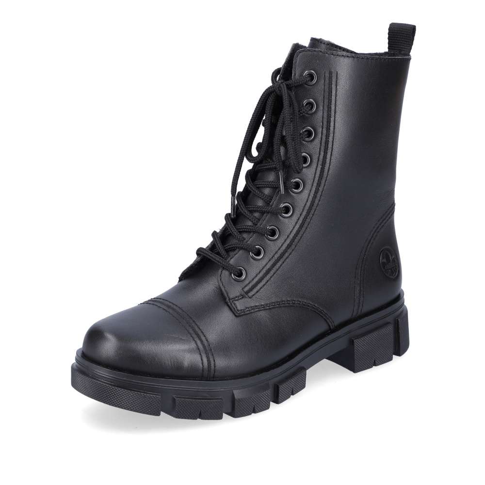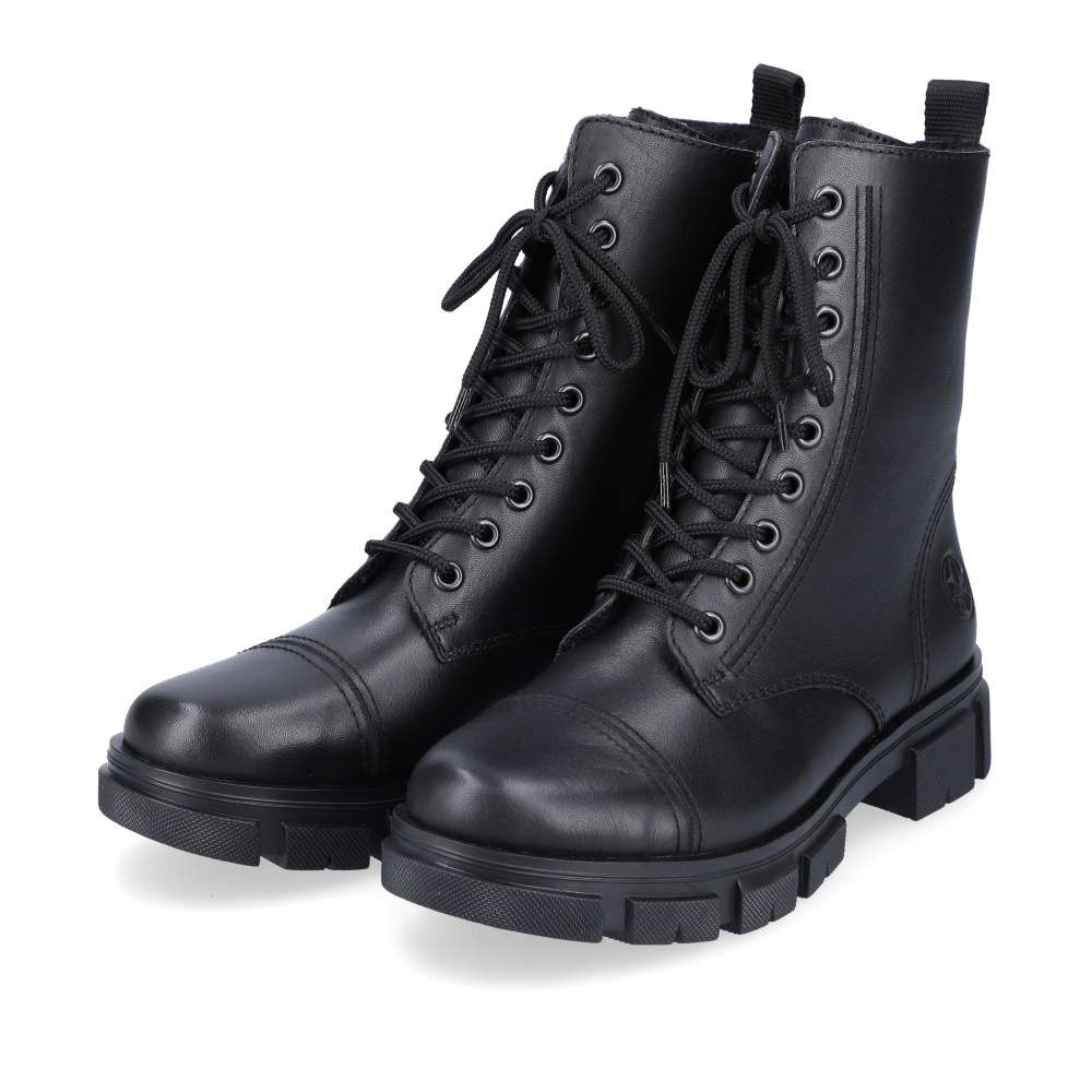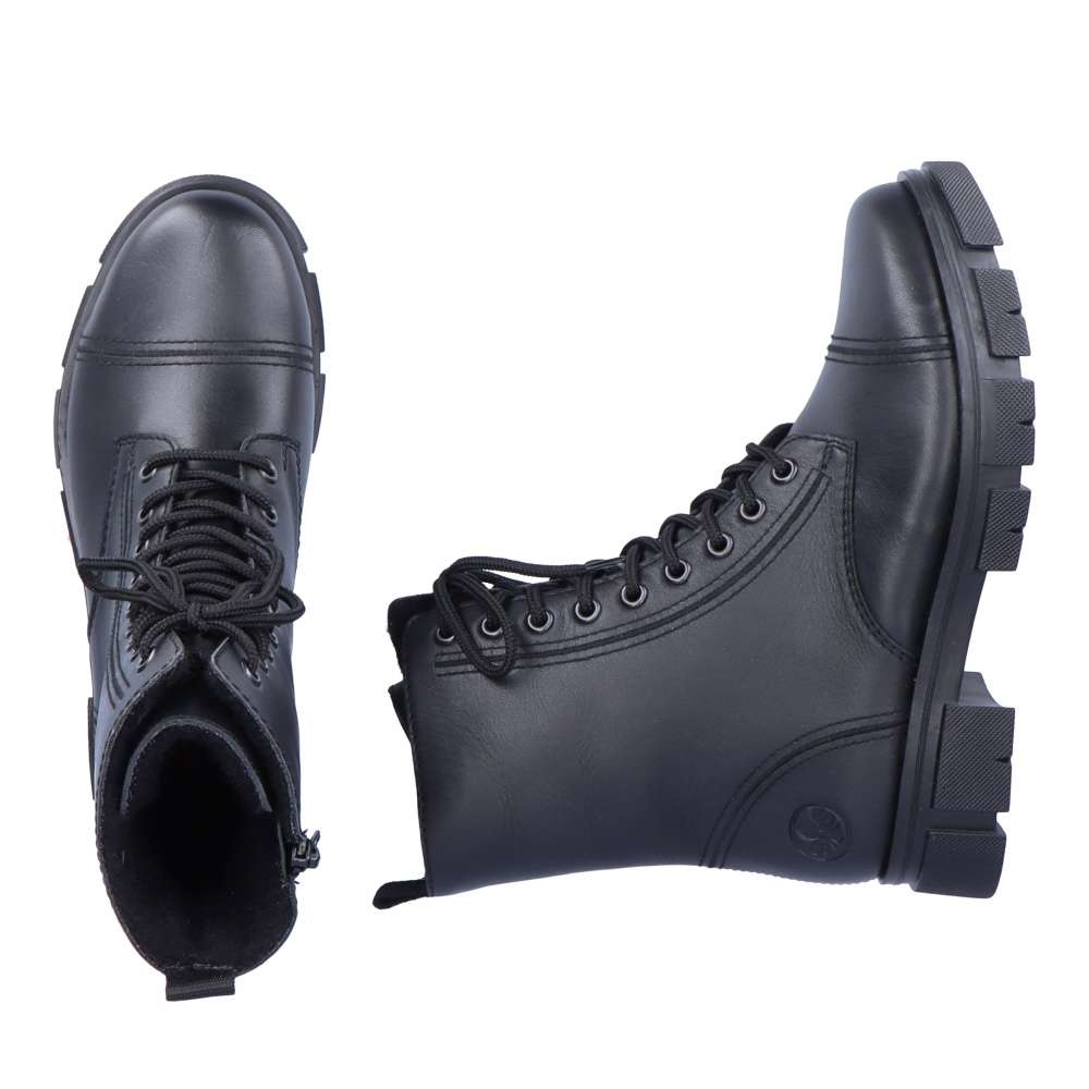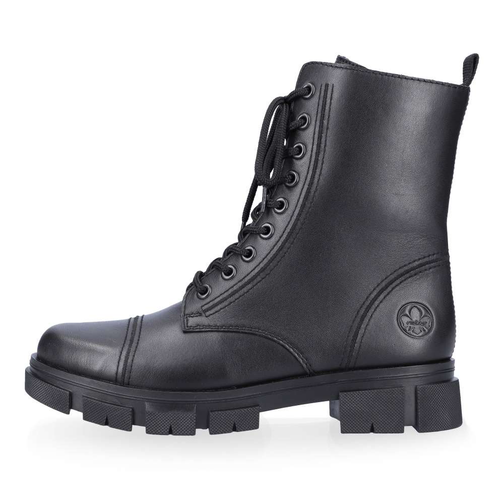 Detailní informace Dámská kotníková obuv na šněrování značky Rieker je skvělý model pro tuto sezónu. Hladký černý svršek je zdobený jemným prošíváním a logem Rieker v zadní části obuvi. Ovčí vlna a měkká stélka Vám zajistí teplo a pohodlí při každém kroku. Traktorová podešev je ideální na každodenní nošení jak do města, tak do náročnějšího terénu.