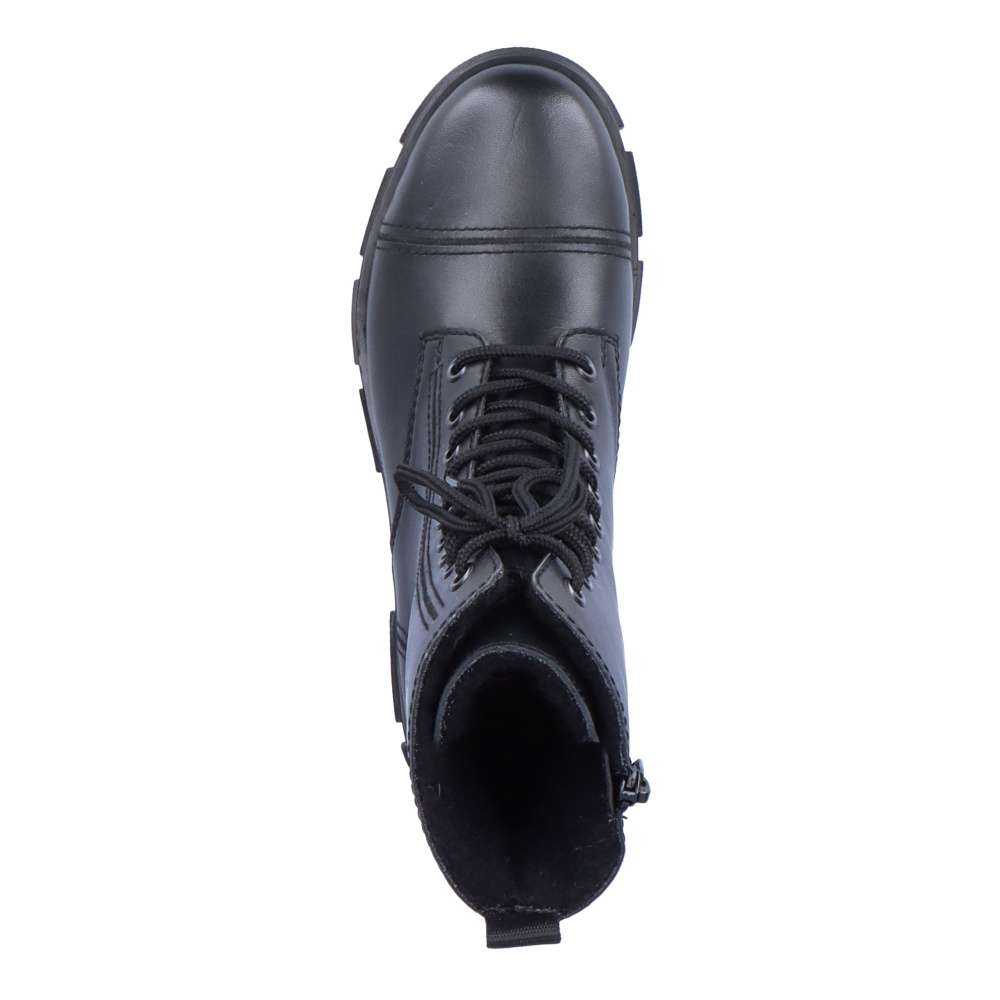 Dámská kotníková obuv na šněrování značky Rieker je skvělý model pro tuto sezónu. Hladký černý svršek je zdobený jemným prošíváním a logem Rieker v zadní části obuvi. Ovčí vlna a měkká stélka Vám zajistí teplo a pohodlí při každém kroku. Traktorová podešev je ideální na každodenní nošení jak do města, tak do náročnějšího terénu. Technologie: Antistress – podešev je díky této technologii lehká, flexibilní, absorbuje nárazy při došlapu a snadno se přizpůsobí každé noze. Podšívka je vyrobena z pravé ovčí vlny.