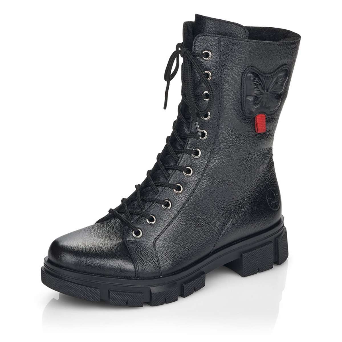 Šněrovací obuv s hladkým svrškem a vtlačeným obrázkem motýla, značky RIEKER.