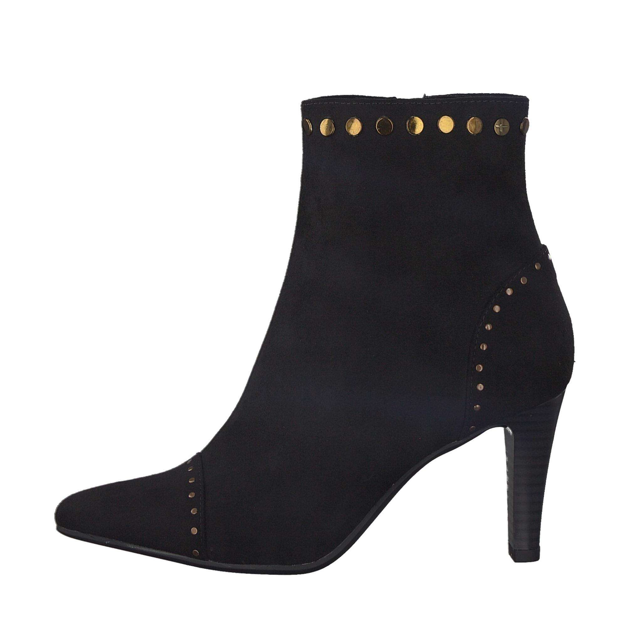 Dámská kotníková obuv černé barvy na vyšším podpatku, značky TAMARIS.