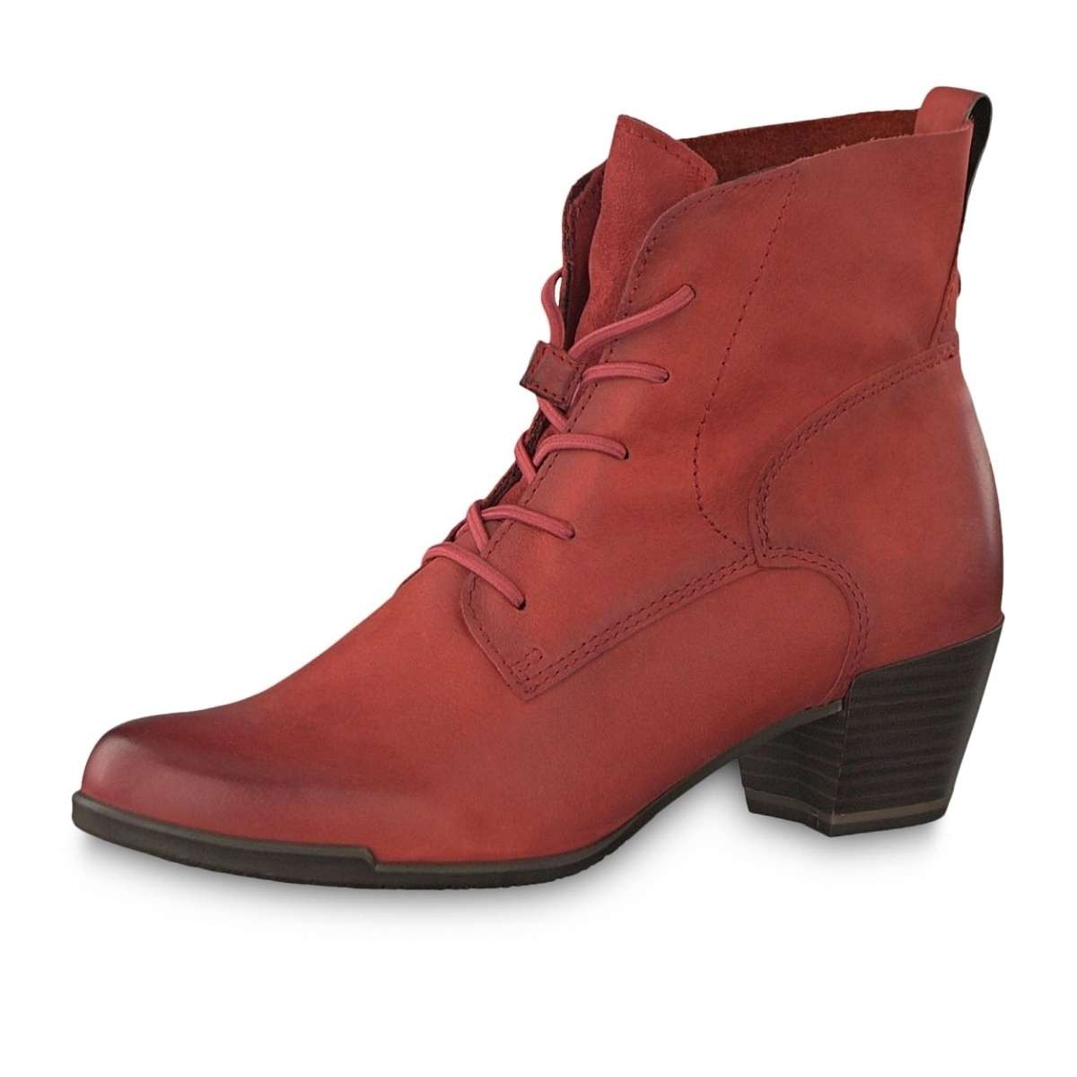 Dámská kotníková obuv se stahovací gumičkou v červené barvě, značky TAMARIS.