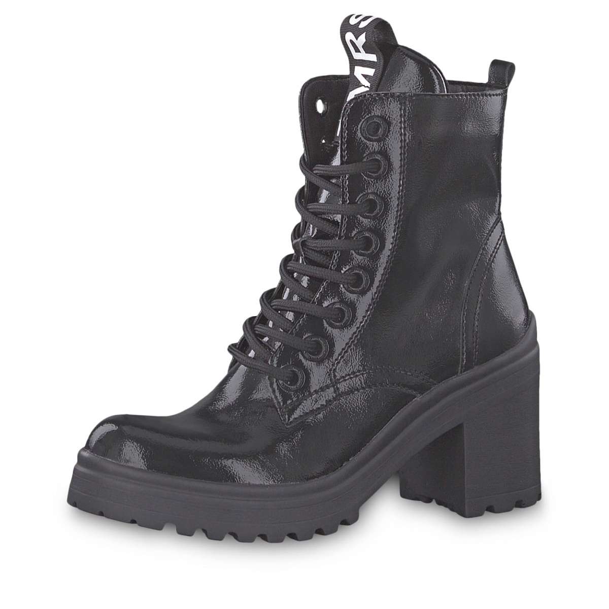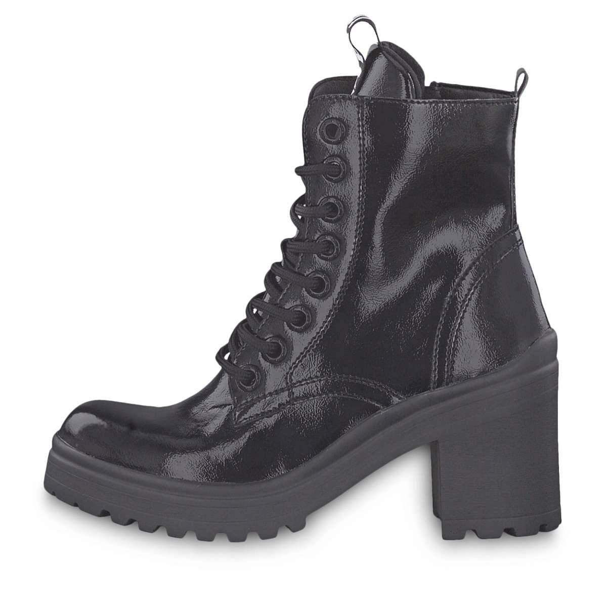 Dámská kotníková obuv černé barvy na vysokém podpatku, značky TAMARIS.