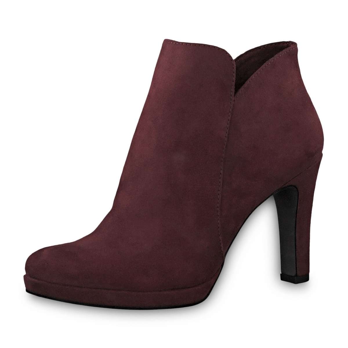 Dámské kotníkové boty na vysokém podpatku vínové barvy, značky TAMARIS.
