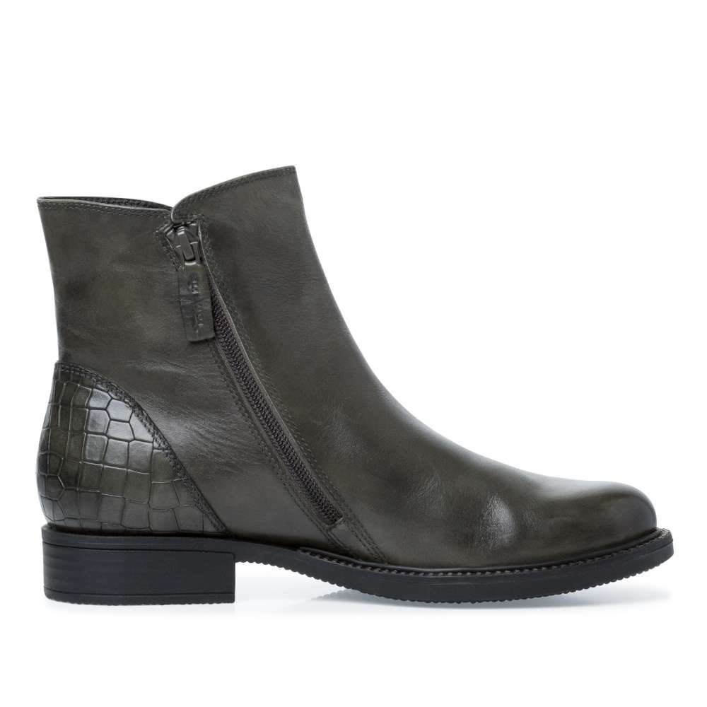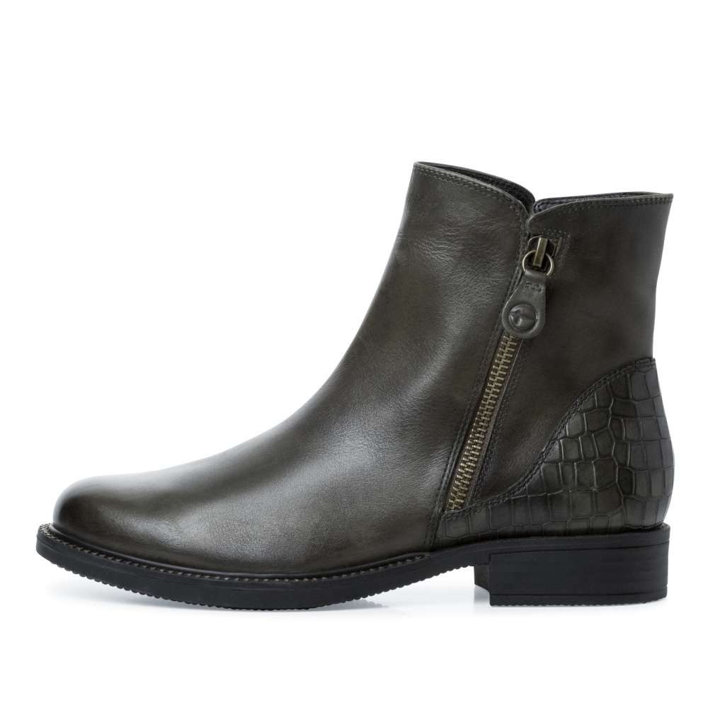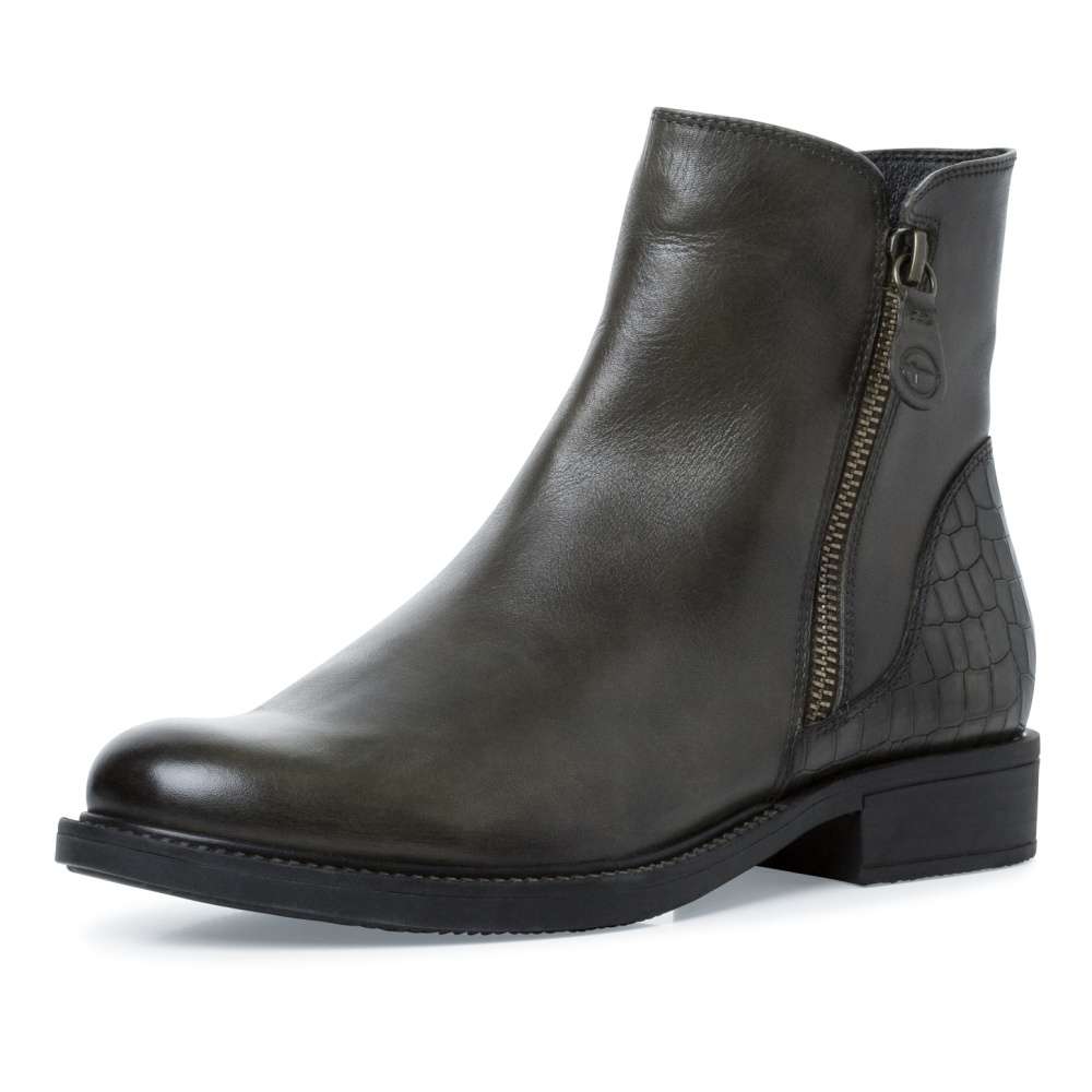 Detailní informace Dámské kožené kotníky značky TAMARIS jsou zde přímo pro Vás. Hladký svršek je zdoben kroko stylem v patní části. Pro snadné obutí poslouží funkční zip. Měkká stélka a pohodlná podešev zajistí maximální pohodlí na každém kroku. S tímto společníkem můžete vyrazit do města i do práce za každého počasí.